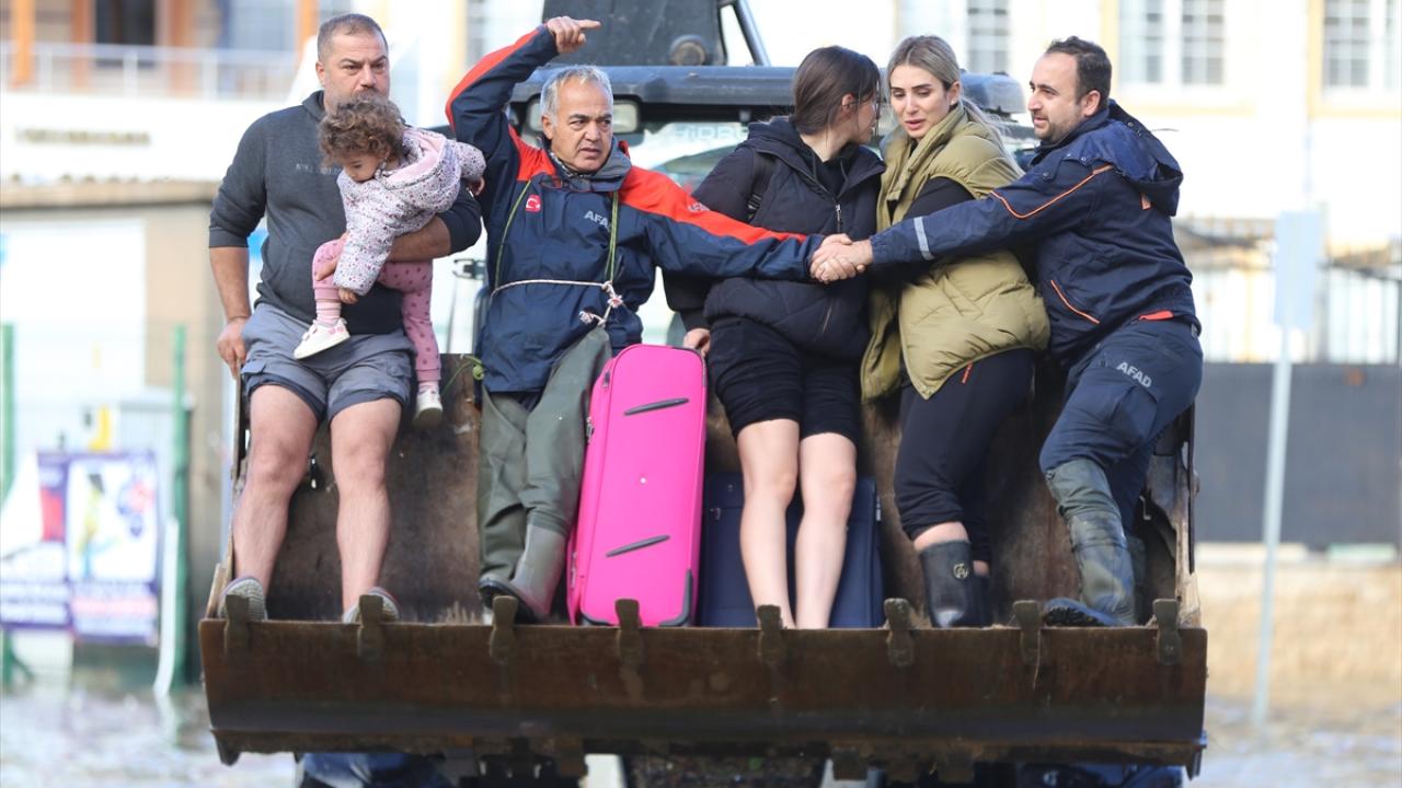 Sahile yakın bölgelerdeki binalarında mahsur kalan vatandaşlar, AFAD ve itfaiye ekiplerince kurtarıldı.