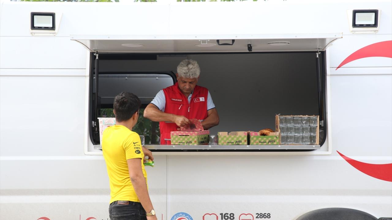 Türk Kızılayı personeli de sağanaktan etkilenen vatandaşlara yiyecek ve içecek ikramında bulundu.