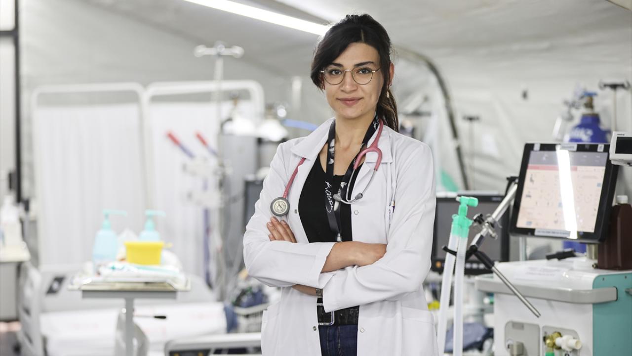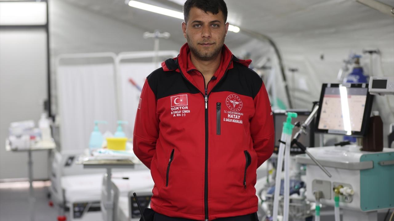 Kahramanmaraş merkezli depremde en büyük yıkımın yaşandığı Hatay'da görev yapan sağlık çalışanları, deprem nedeniyle kurulan sahra hastanesinde 14 Mart Tıp Bayramı'nı karşıladı.