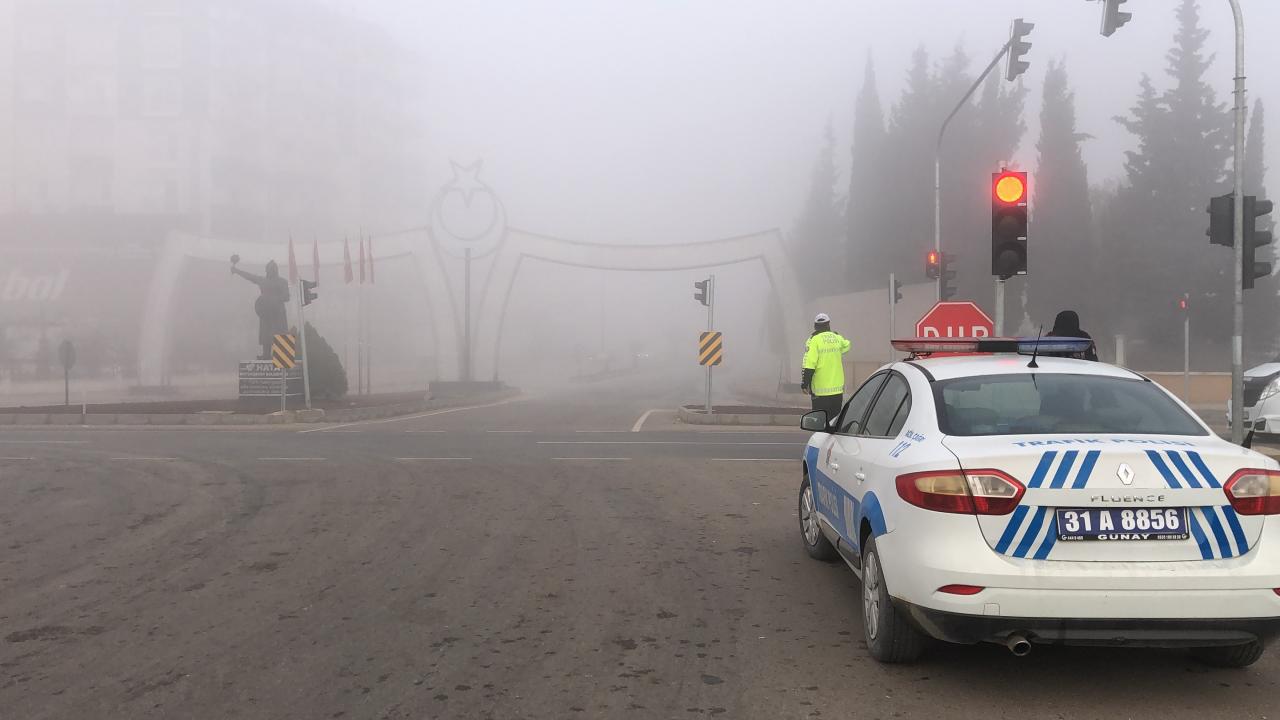 Görüş mesafesinin düştüğü Kırıkhan-Antakya yolunda trafik ekipleri, sürücüleri dikkatli olmaları konusunda uyardı.