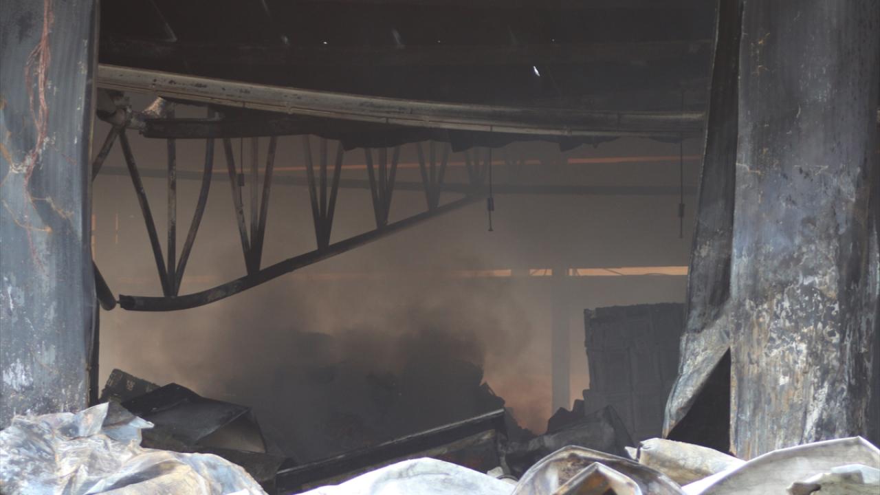 Yangın nedeniyle depoda hasar oluştu.