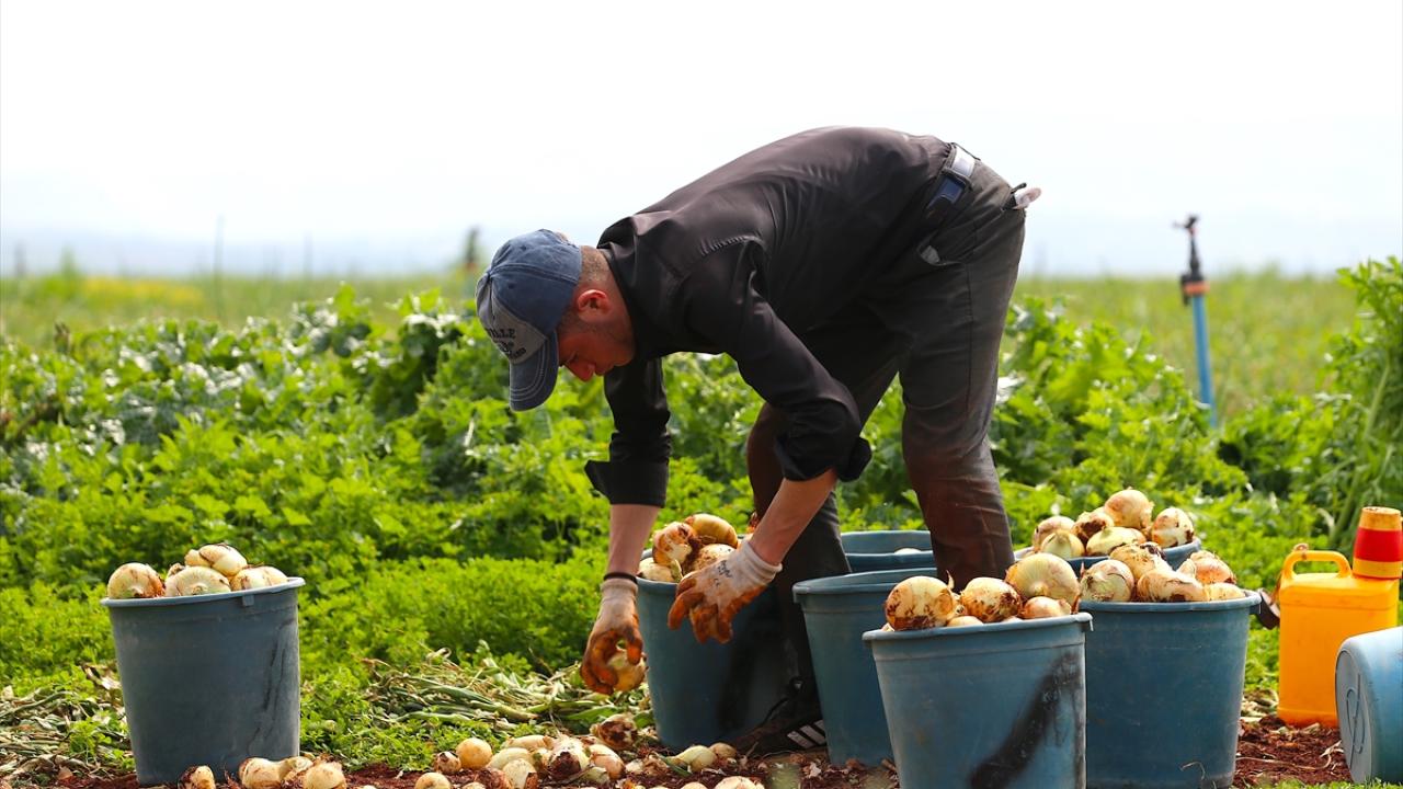 Verimli topraklarında yıl içerisinde birden fazla ürünün yetiştirildiği Amik Ovası`nda, turfanda soğan hasadına başlandı.