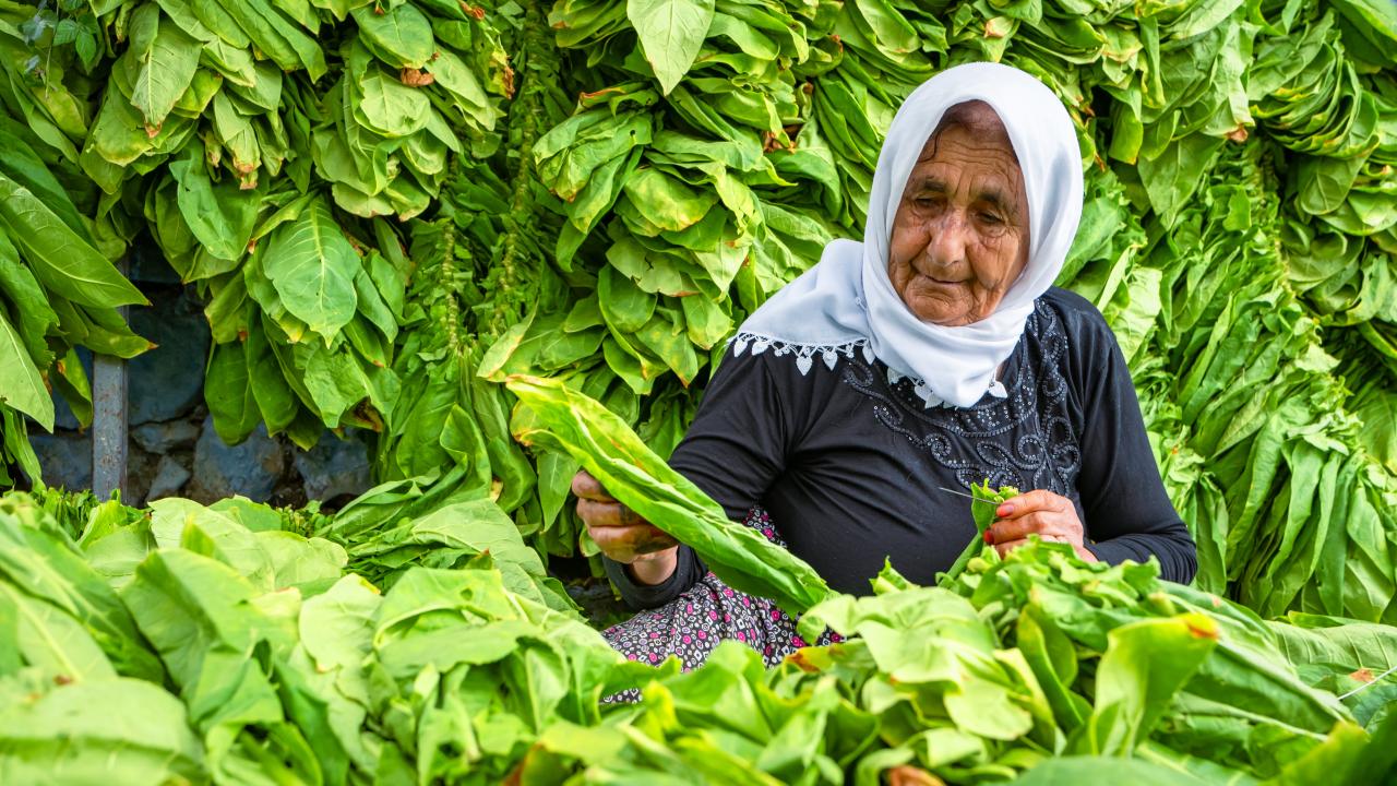 Hatay'ın Yayladağı ilçesine bağlı Yayıkdamlar Mahallesi'nde tütün hasadı dönemi devam ediyor.