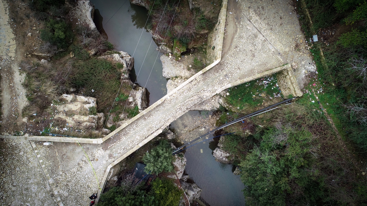 Kullanılabilir durumdaki köprüden küçük araçların geçebildiği anlatan Halistürk, "Kahramanmaraş depremlerinde ayrılmıştı köprü ancak kullanılabilecek durumdaydı. Hatay`daki depremden sonra yamaçtan düşen taşlar nedeniyle yıkım oluştu." dedi.
