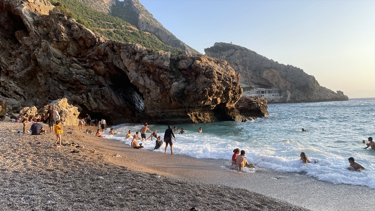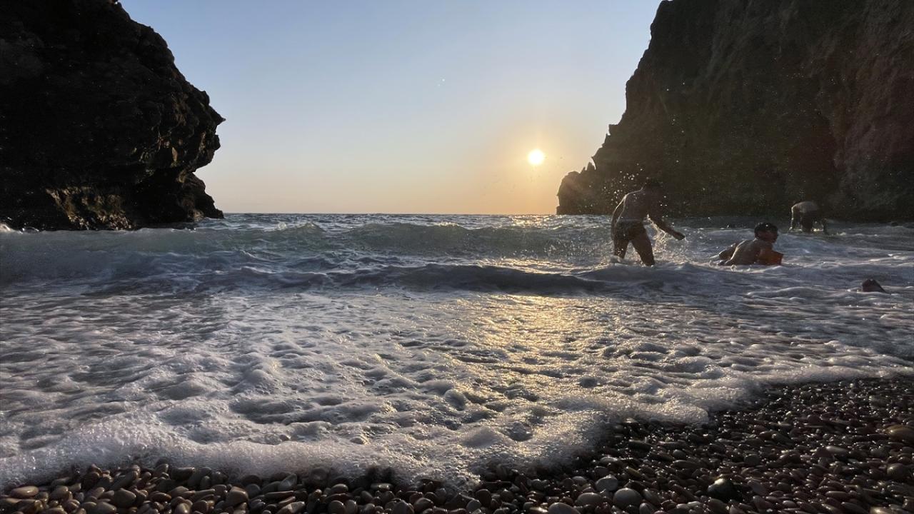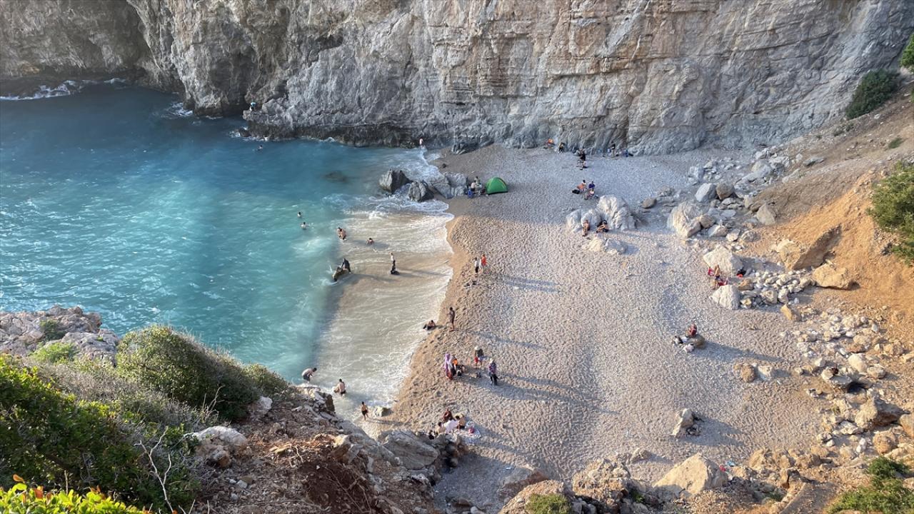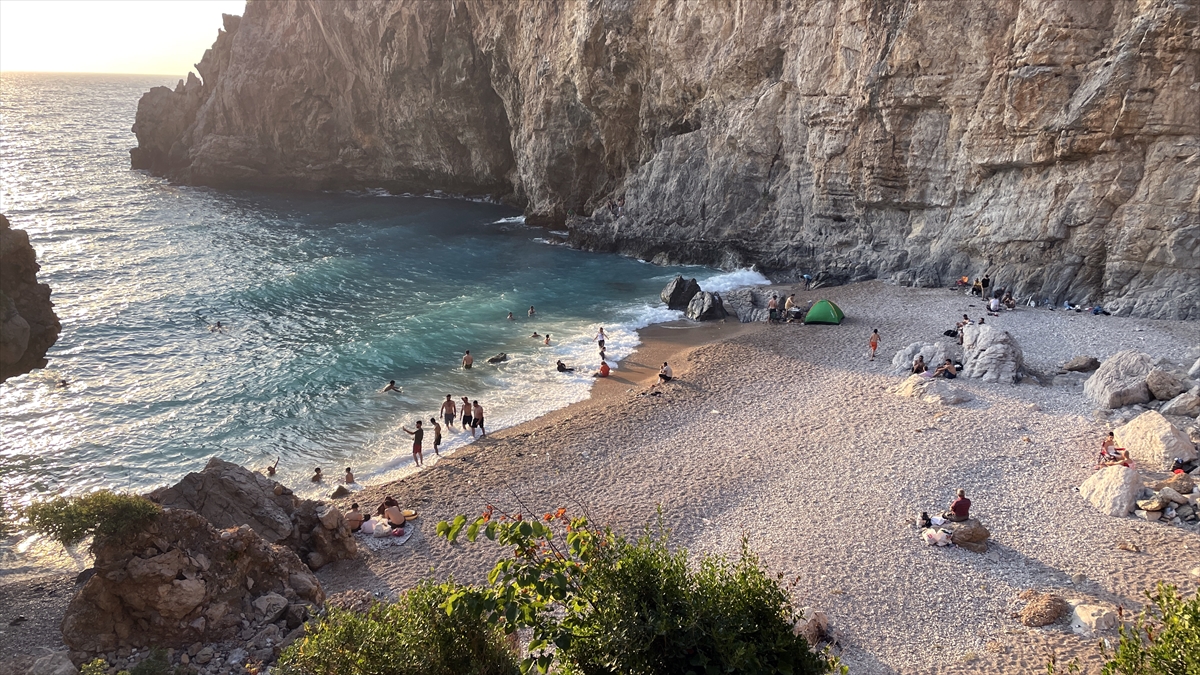 Sıcaktan bunalanların denizde yüzerek serinlediği koyda, bazı ziyaretçiler balık tutup piknik yaparak vakit geçirdi.