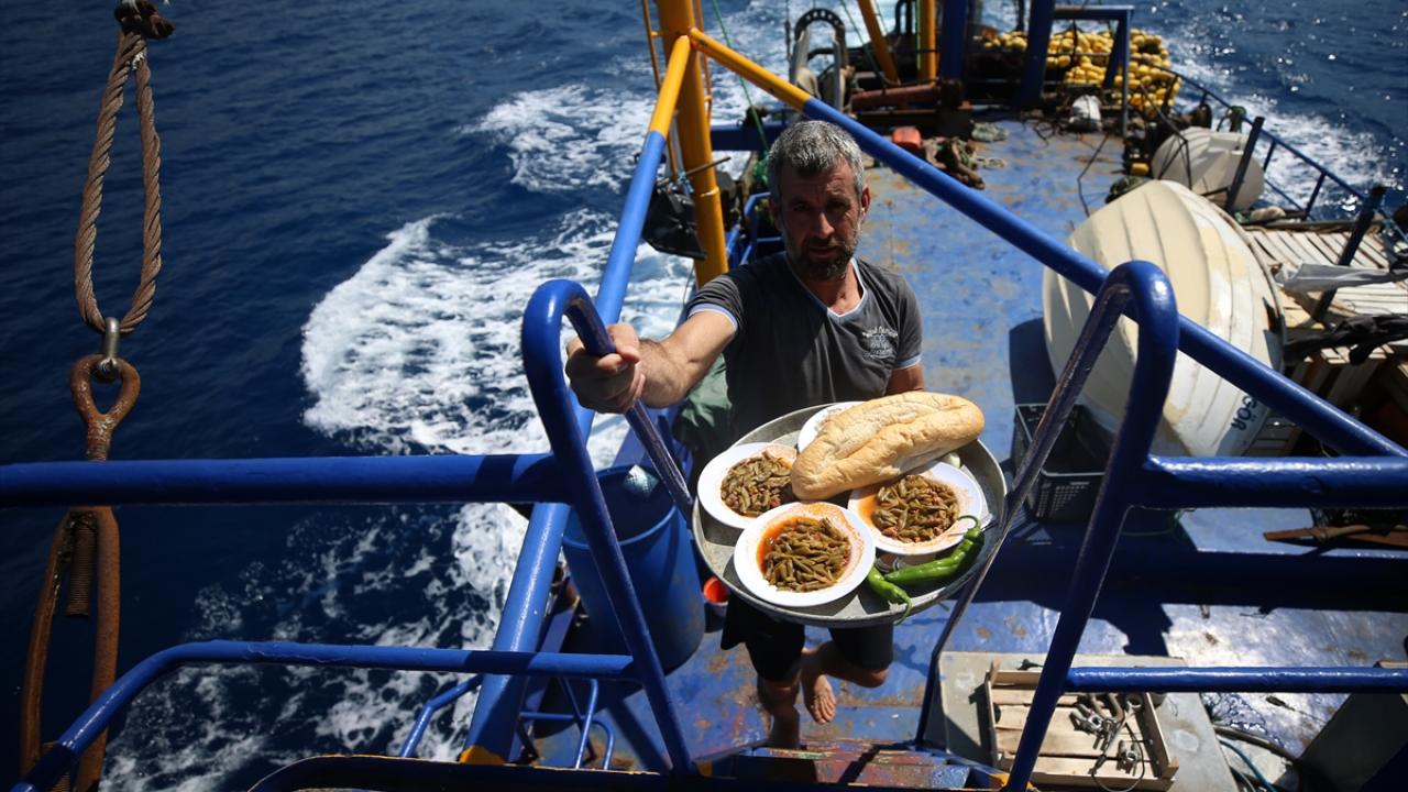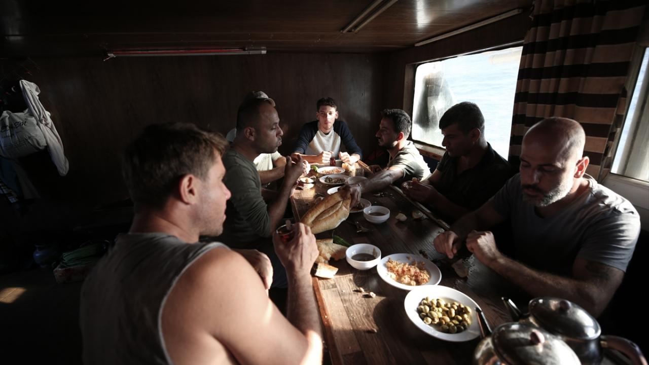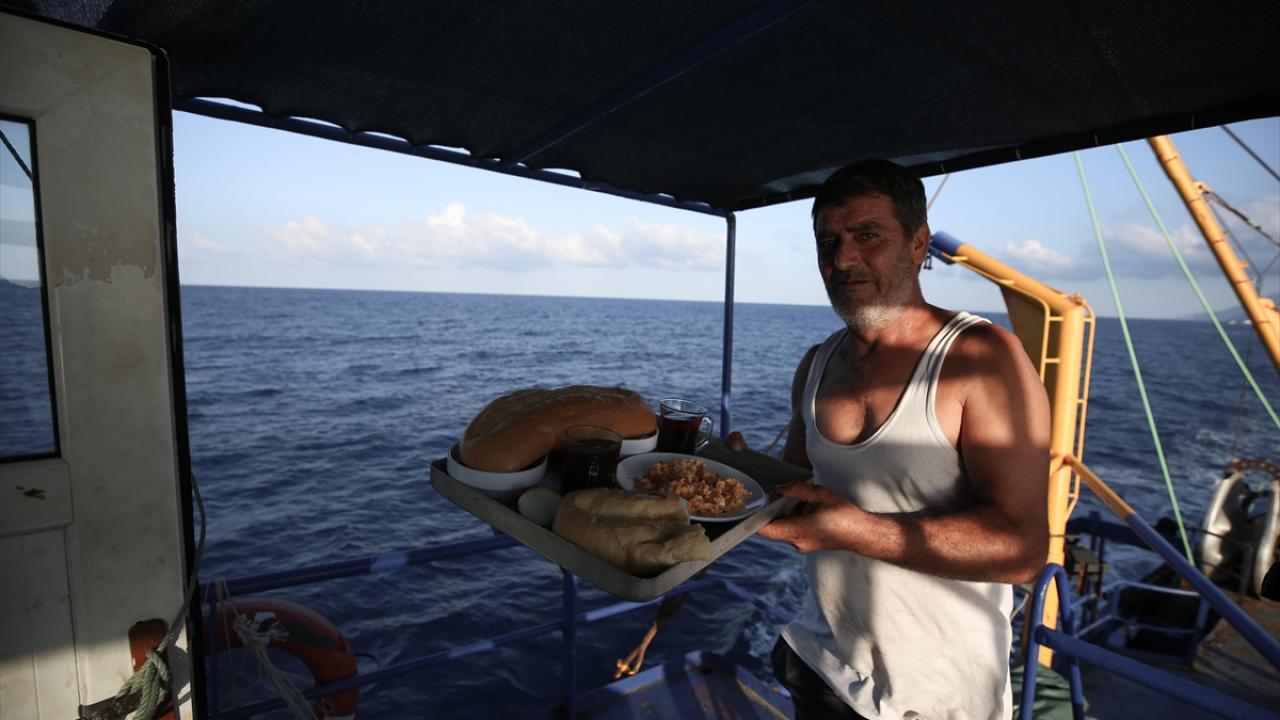 Av döneminde en az 2 günlerini teknede geçiren balıkçılar, aşçı tarafından hazırlanan yemekleri de birlikte yiyor.