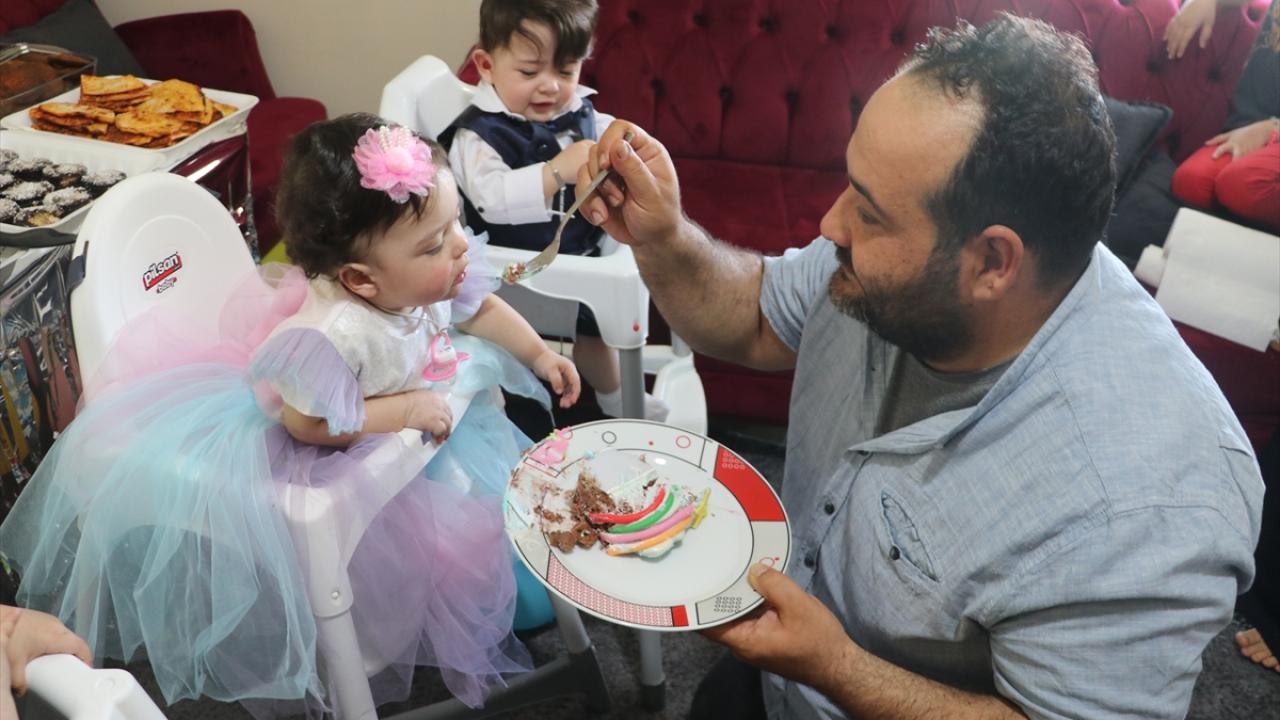8 ay önce Aile, Çalışma ve Sosyal Hizmetler Bakanlığının girişimleriyle Türkiye'ye getirilen Hataylı Merve-Hüseyin Huyluoğlu çifti, beşiz çocuklarının ilk yaş günlerini kutladı.
