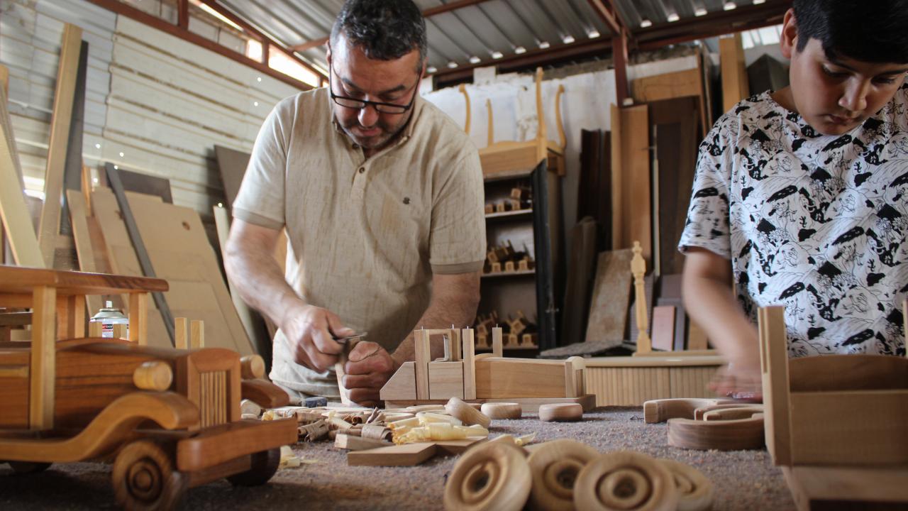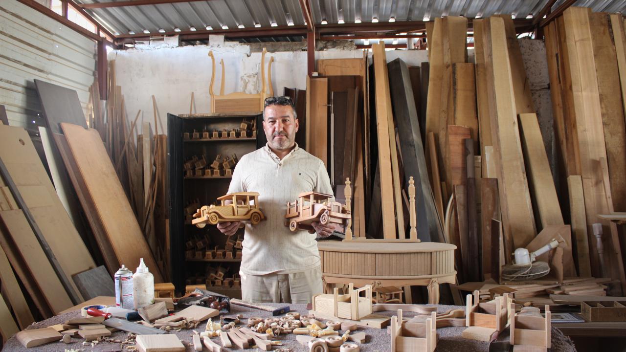 Kaya, yaptığı ürünlerden çok fazla ahşap atık çıktığını, bunlardan daha öncesinde atölyesinde hobi amaçlı çeşitli oyuncaklar yaptığını dile getirdi.