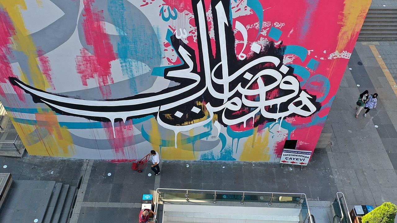 Hat sanatının yaşayan önemli temsilcilerinden 83 yaşındaki Hasan Çelebi'nin eseri, Muhammed Emin Türkmen tarafından Trabzon'daki bir duvarda grafiti olarak yeniden yorumlandı.