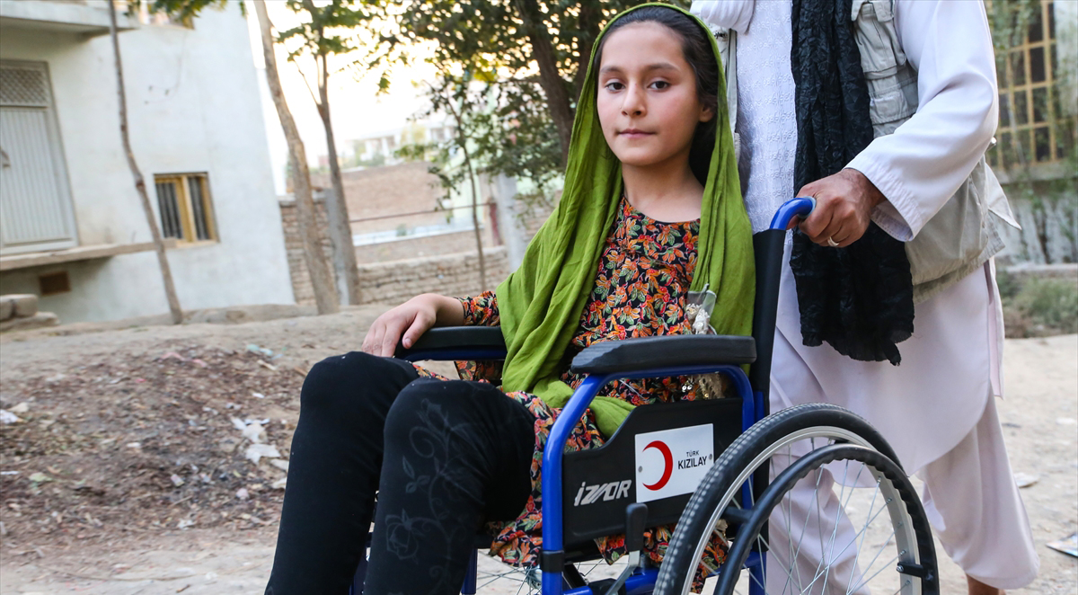 Kabil`in Hayırhane bölgesinde yaşayan 11 yaşındaki Afgan kız çocuğu Hacire Otmanhil de yardımlar kapsamında, hayatında ilk kez tekerlekli sandalye sahibi olanlardan sadece biri.
