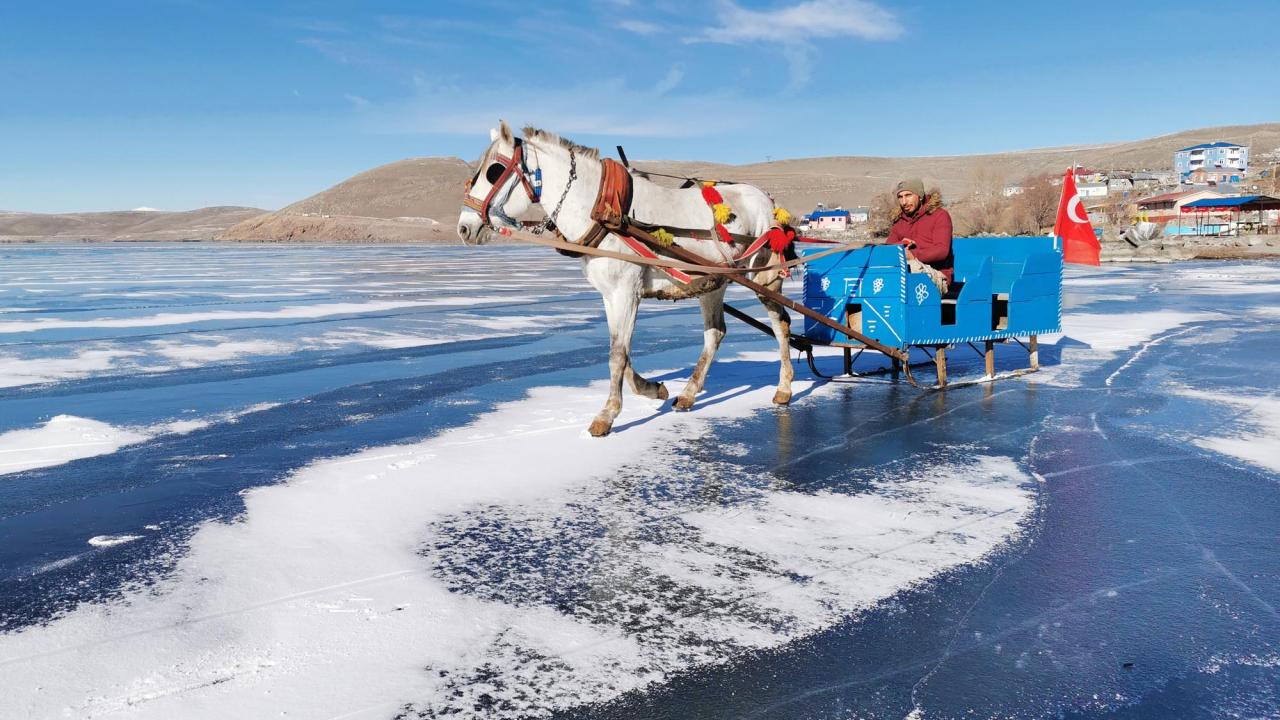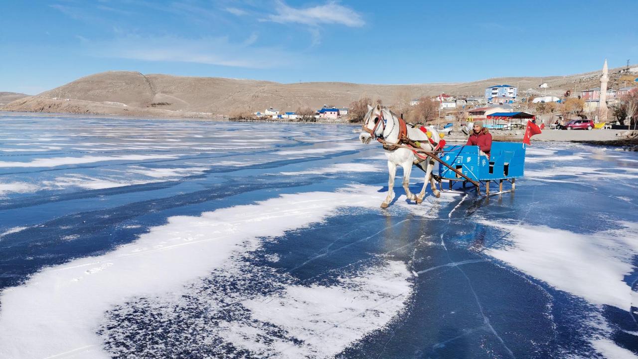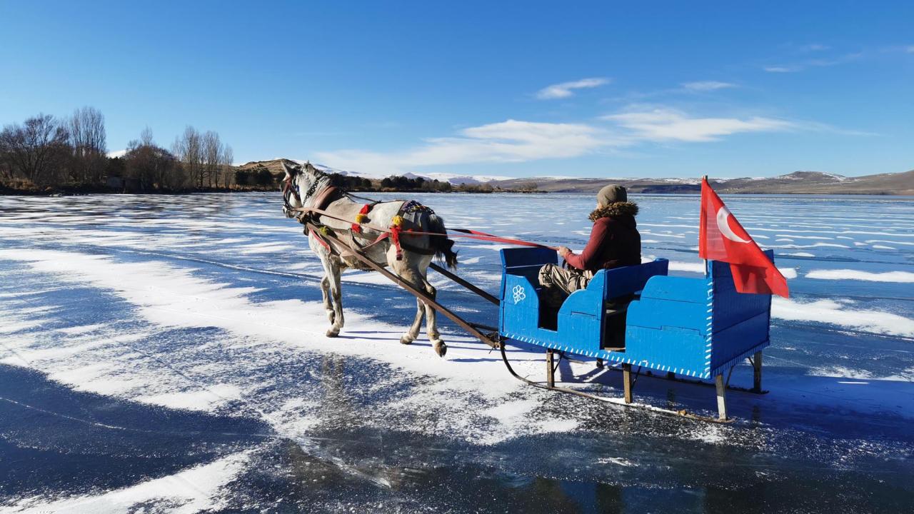 Gölün Arpaçay ilçesinde kalan bölümünde atlı kızak seferleri 2022`nin sonunda başladı. Buz kalınlığının atlı kızaklara uygun hale gelmesiyle birlikte Kurtuluş Kılıç, kızağıyla ilk misafirlerini gezdirdi. Denizli`den gelen Duygu-Hasan Çetin çiftini gölde gezdiren Kılıç, bu yıl sezonunun 15-20 gün geç başladığını söyledi. İlk kez kızak deneyimi yaşadıklarını belirten Çetin çifti ise heyecan veren bir tecrübe yaşadıklarını kaydetti.