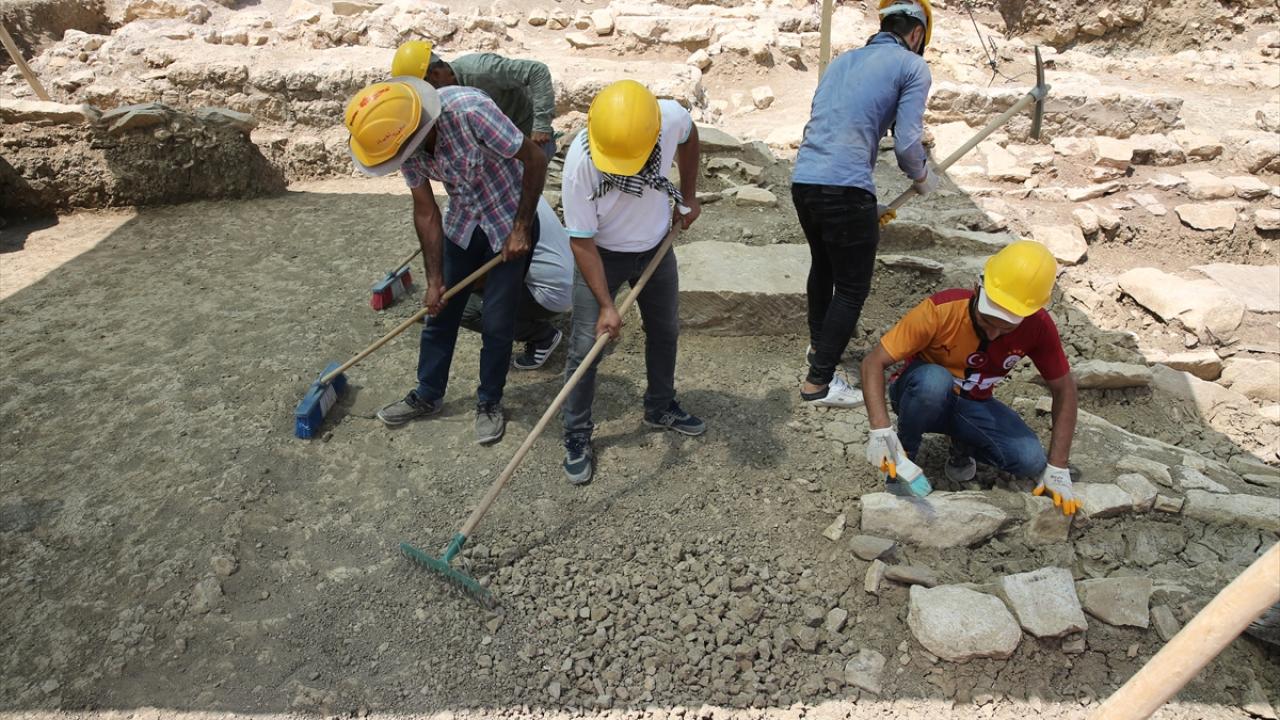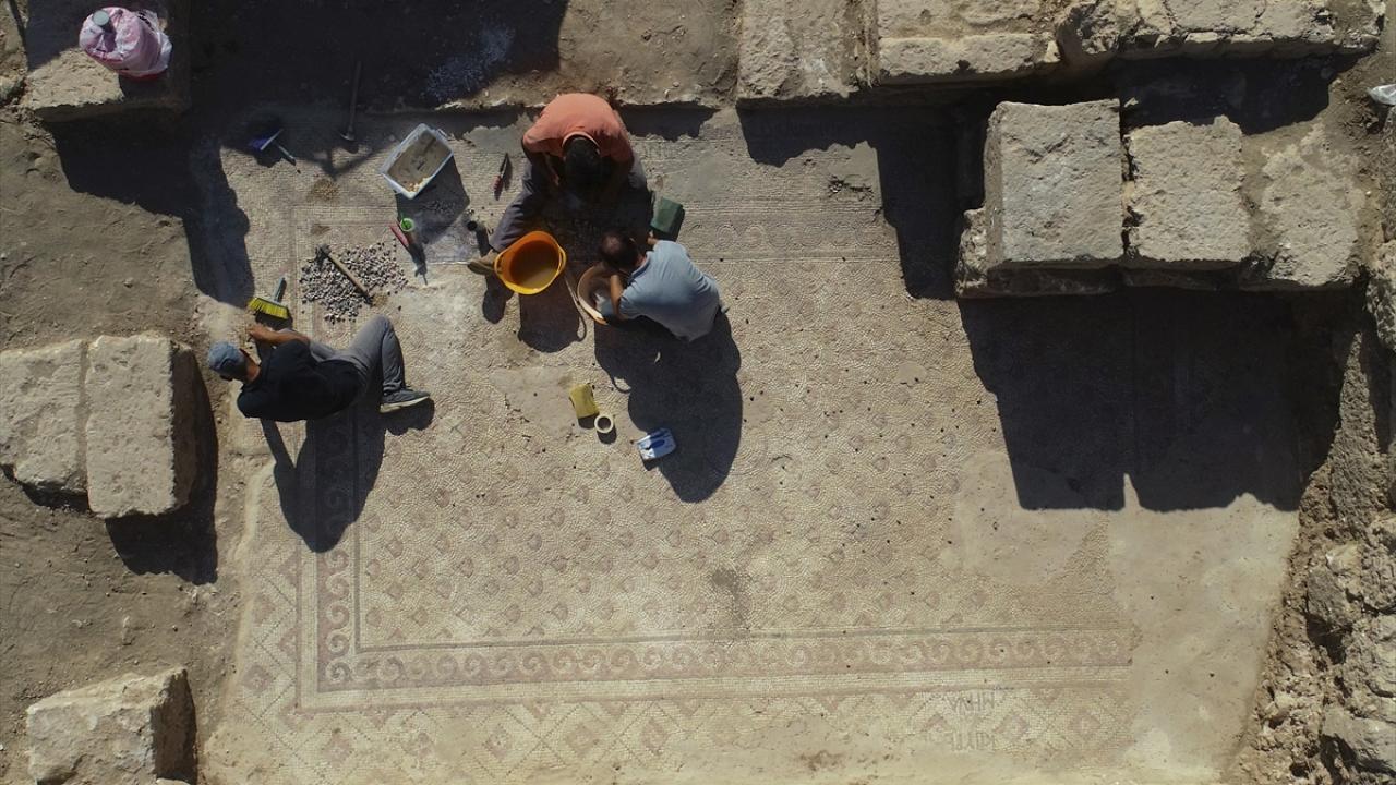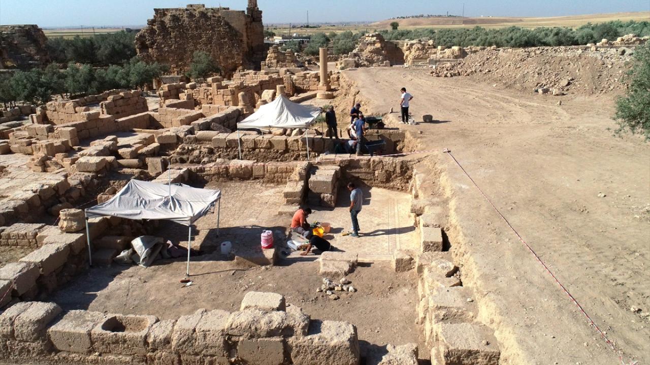 Doğu Roma İmparatorluğu`nun sınırını Sasaniler`e karşı korumak amacıyla kurulan antik kentteki agorada devam eden kazı çalışmalarında da 20`ye yakın dükkan ve atölyenin yanı sıra bu yıl da Roma Dönemi`nde yapılan 1500 yıllık içme suyu sistemi ile dükkan ve atölyelerin hemen yanında konut olarak kullanıldığı değerlendirilen yapılarda damla ve dalga figürlü yaklaşık 1500 yıllık mozaik alan keşfedildi.