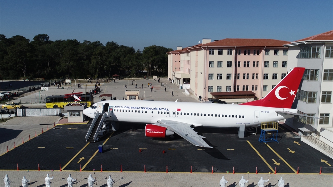 Antalya'daki Aksu Uçak Bakım Teknolojileri Mesleki ve Teknik Anadolu Lisesi öğrencileri, bir hayırseverin hibe ettiği ve okul bahçesine yerleştirilen "Boeing 737-400 Classic" tipi eski yolcu uçağının tüm bakım onarım işlerini yaparak teorik bilgilerini pekiştiriyor.