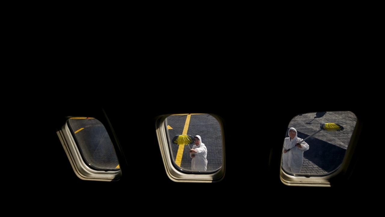 Öğrenciler, eğitim gördükleri eski yolcu uçağını yıkıyor.