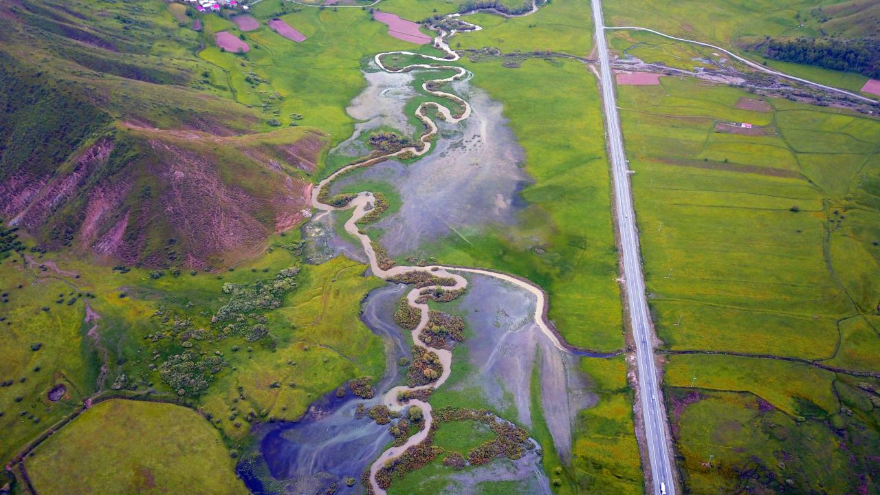 Bitlis'in Tatvan ile Hizan ilçeleri arasında bulunan Güzeldere Vadisi’ndeki yeşillikler arasında uzayıp giden Güzeldere menderesleri havadan dron ile görüntülendi.