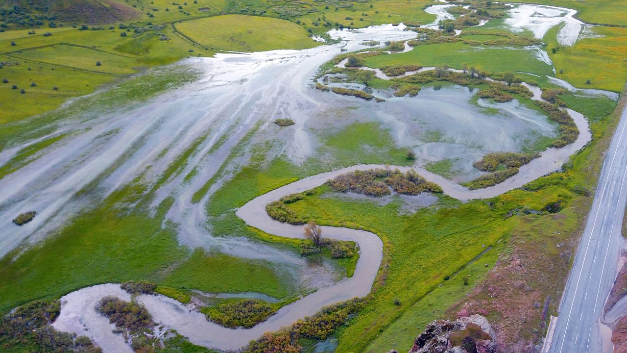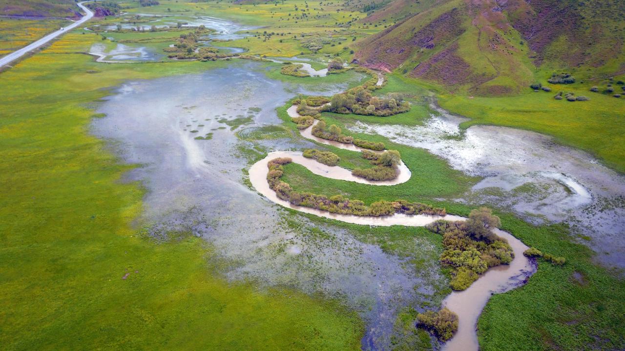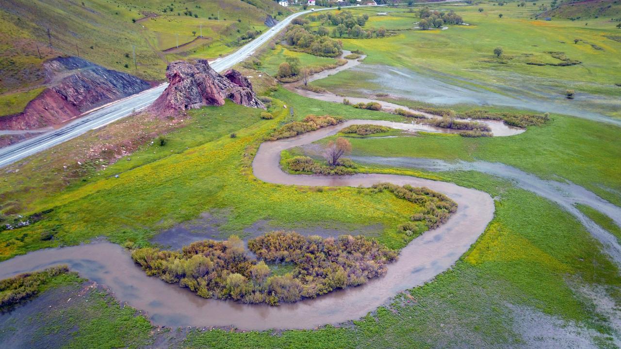 Bahar ayının gelmesiyle birlikte yeşillenen vadideki kıvrak şekilde uzayan menderesler, görsel şölen sunuyor.