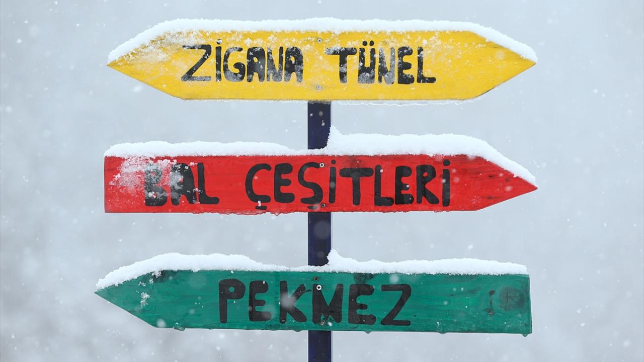 Trabzon-Gümüşhane kara yolunda ve Torul ilçe sınırlarındaki Zigana Dağı, gece saatlerinde etkisi artıran kar yağışının ardından beyaza büründü.