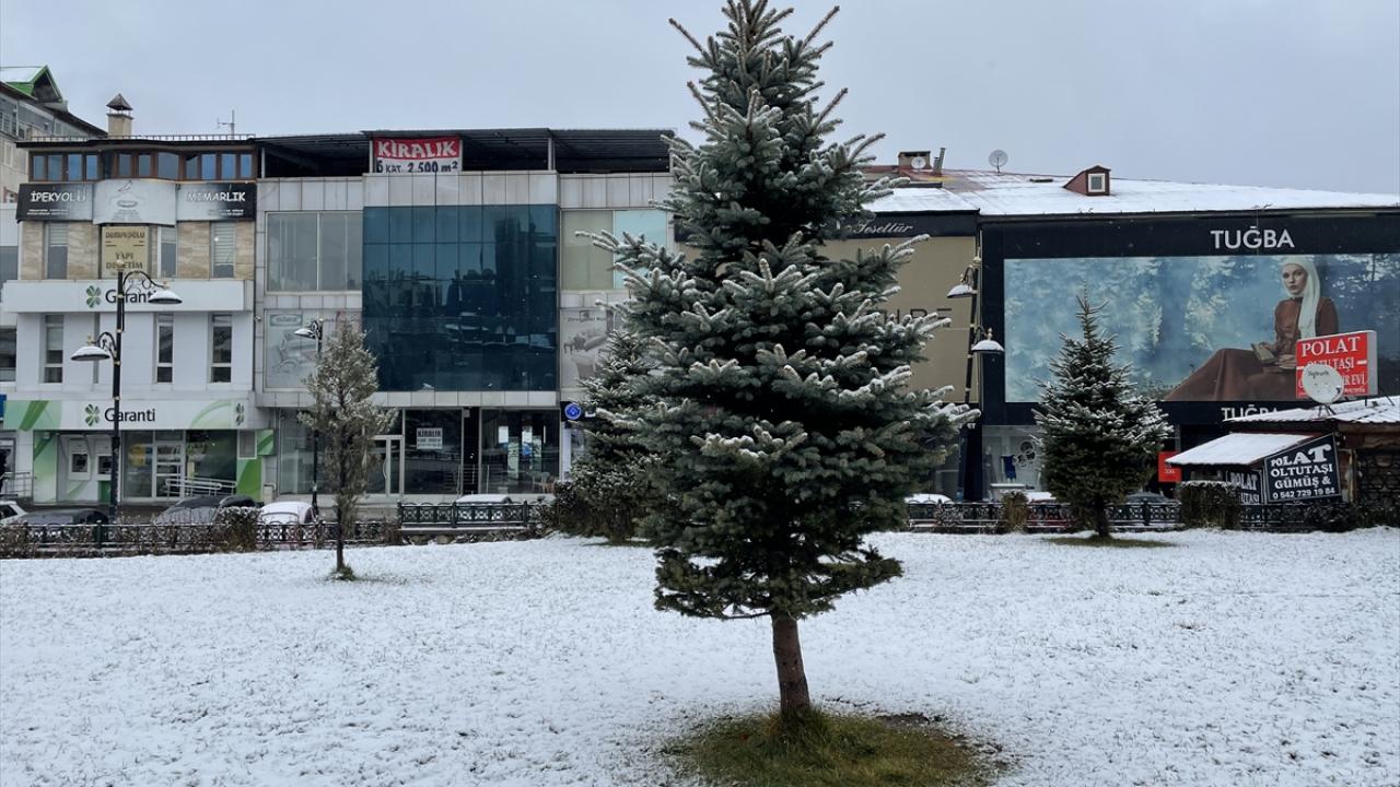 Giresun`un Şebinkarahisar ilçesinde gece aralıklarla etkili olan sağanak, sabah erken saatlerde yerini kar yağışına bıraktı.