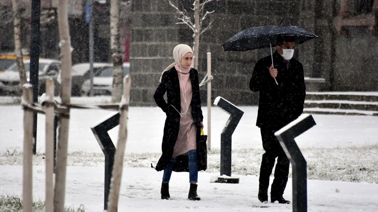 Erzurum`da gece başlayan ve aralıklarla etkisini devam ettiren kar, kenti beyaz örtüyle kapladı.