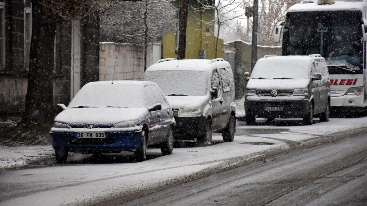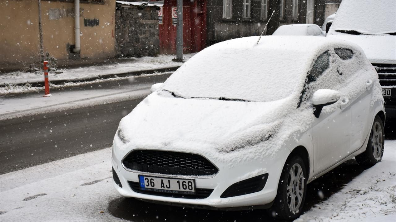 Kars`ta gece başlayan ve etkisini sürdüren kar yağışıyla kent merkezi beyaza bürüdü.
