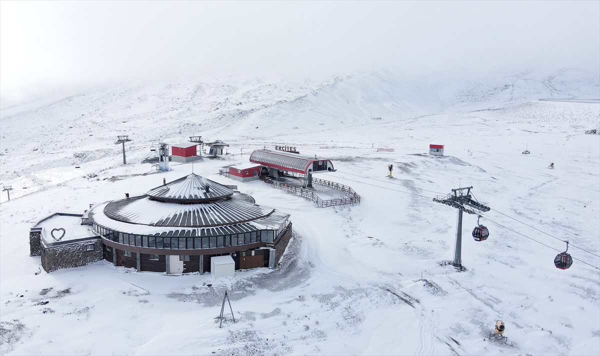 Türkiye`nin önemli kış turizm merkezlerinden Erciyes`te kayak merkezinin bulunduğu alan beyaza büründü.