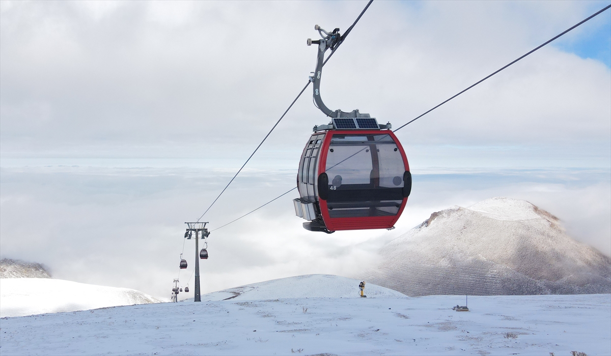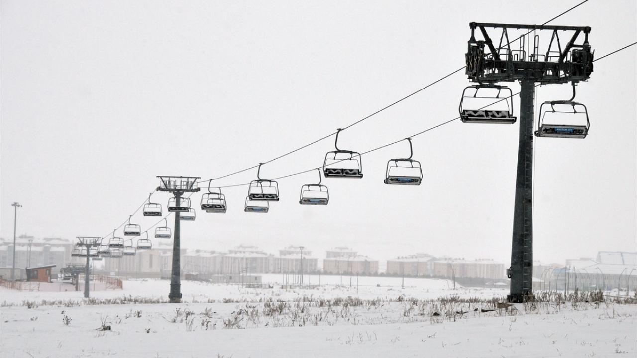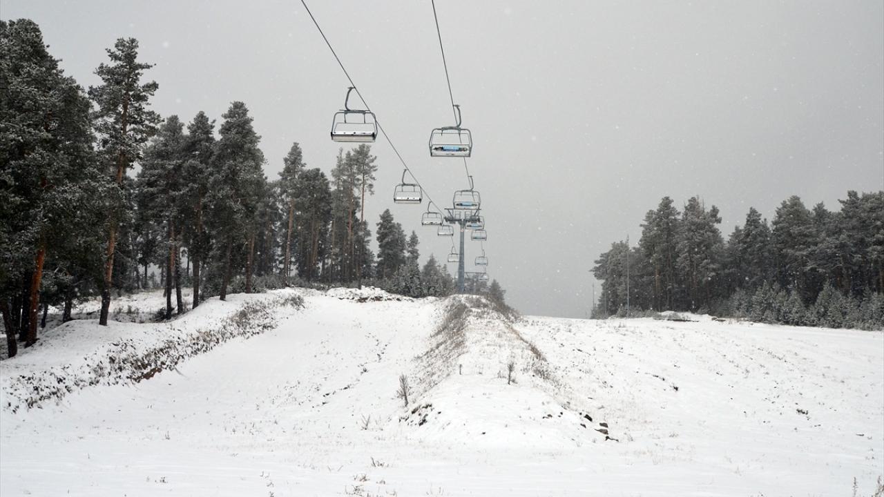 Kars`ın Sarıkamış ilçesindeki Cıbıltepe Kayak Merkezi de karla kaplandı.