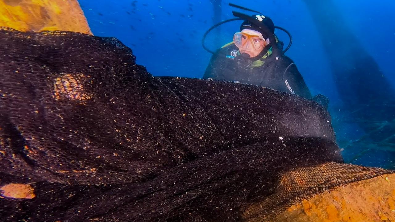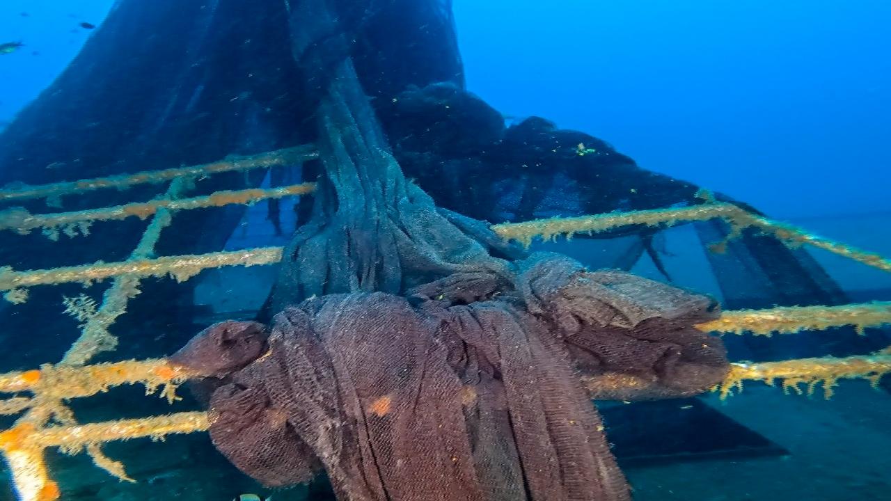 Su altı fotoğrafçılarının ilgisini çeken, yerli ve yabancı turistlerin de uğrak noktası olan, bilinirliği her geçen gün artan 9 Eylül batığı, hayalet ağ ile görünmez oldu.