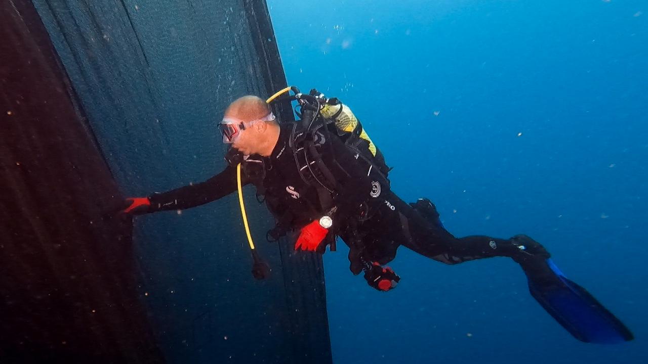 Hem yapay resifte bulunan balıklara hem de dalgıçlara zarar veren ağdan kurtulmak için Karaburun Dalış Merkezinin eğitmenleri harekete geçti.