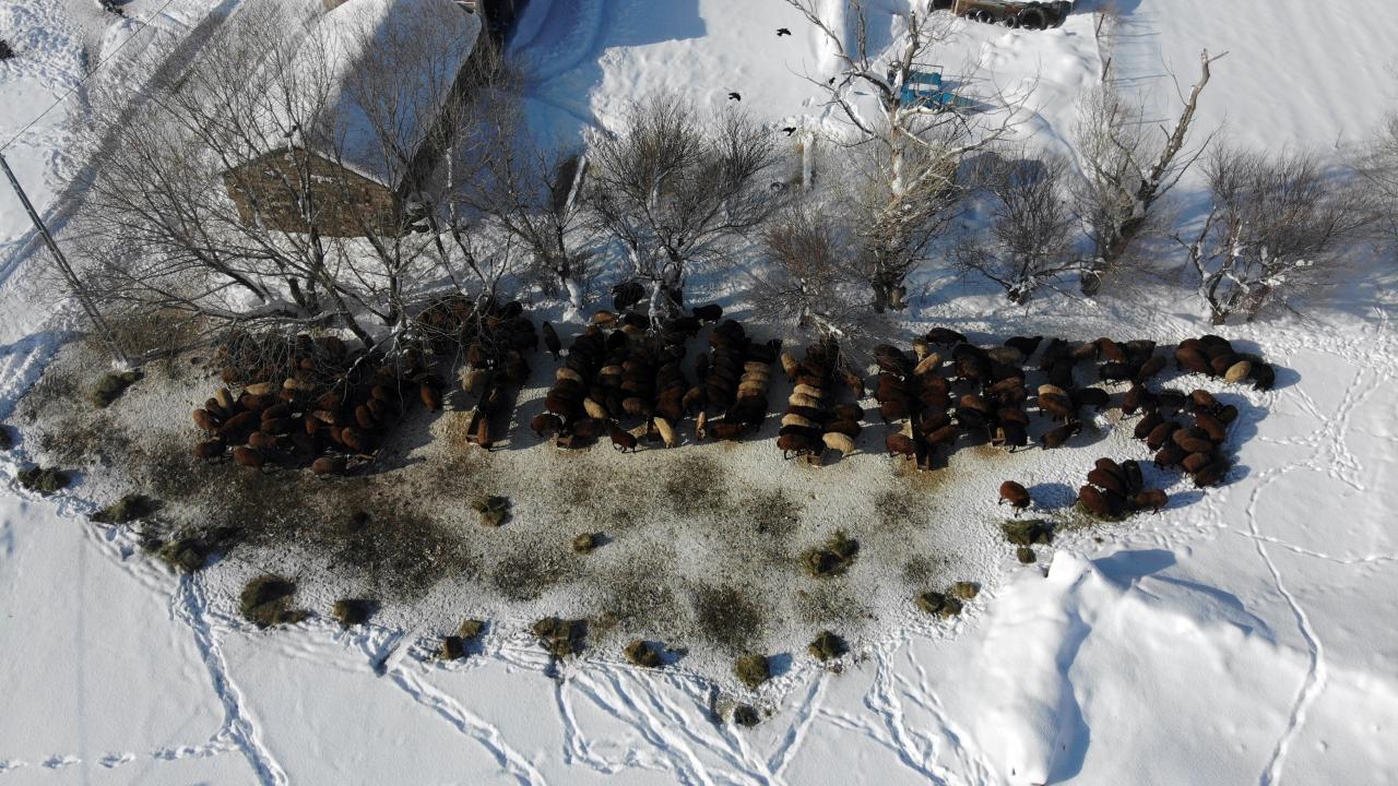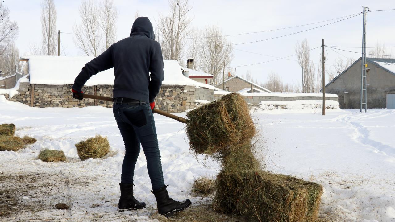 Bölgede kışın çok çetin geçtiğine işaret eden Aslan, "Ağrı`da kışın hayvanları yemlemek zor oluyor. Eşeklere bağladığımız kızaklarla ot ve saman taşıyoruz. Yarım metreyi bulan kar kalınlığı var. Hayvanlar dışarıda yaklaşık 3 saat yemini yiyor, biz de onların başında bekliyoruz. Bu süreç her gün sabah ve akşam devam ediyor" dedi.
