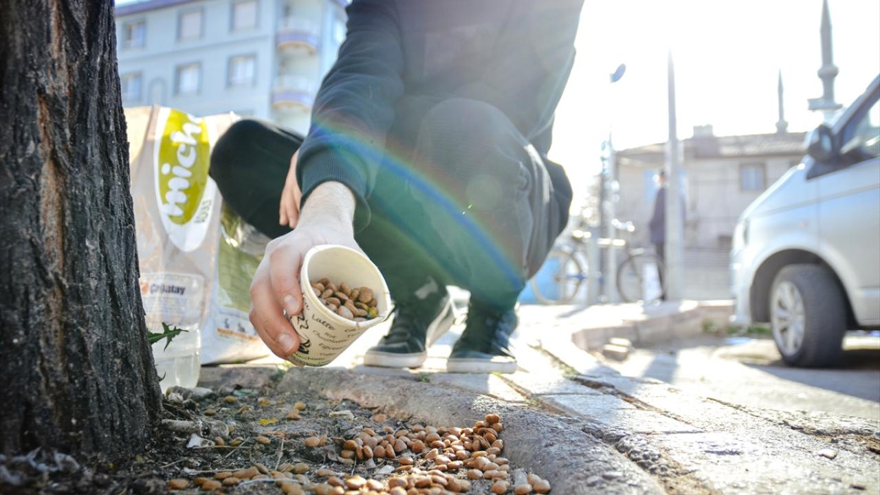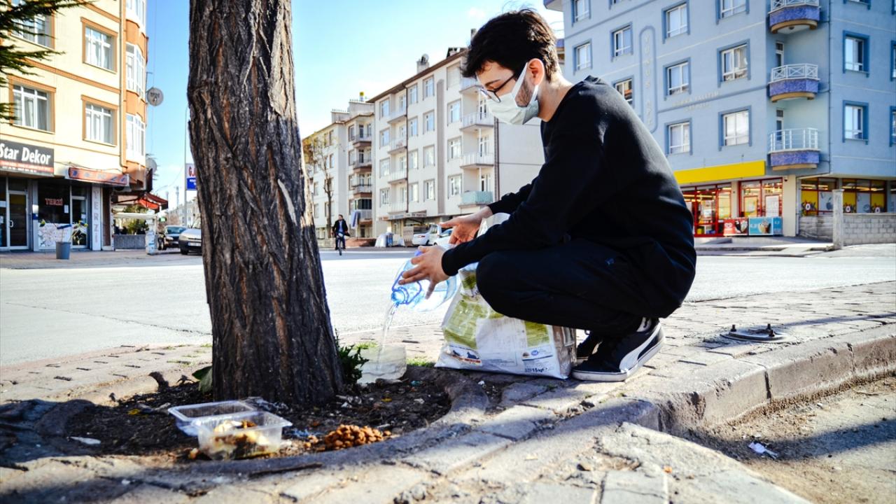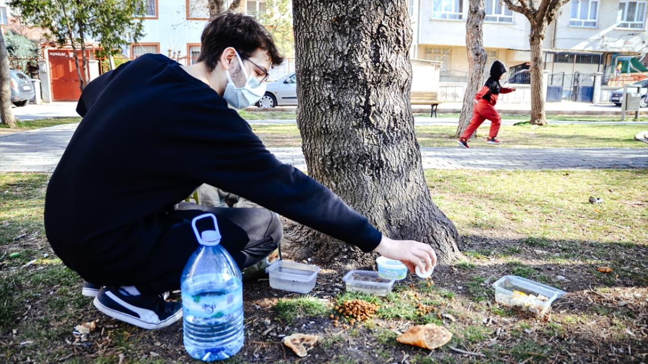 Sokak hayvanlarına ilgisi, 11 yaşındayken kışın soğukta kalmasın diye evine aldığı yavru kediyle başlayan Mehmet Duman, günlük 35 noktaya kedi ve köpekler için mama ve su bıraktığını söyledi.