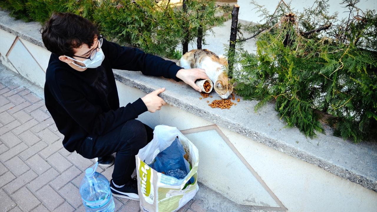 Lise son sınıf öğrencisi Duman, harçlıklarıyla aldığı mamalarla yüzlerce sokak hayvanının beslenmesini sağlıyor.