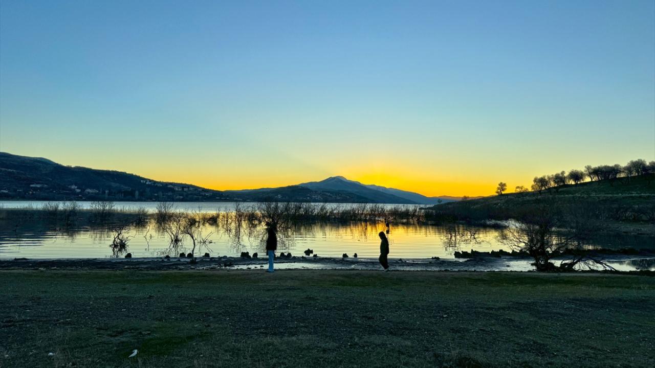 Gün batımında bambaşka renklere bürünen göl, fotoğrafçılar için de çekim alanı oluşturuyor.