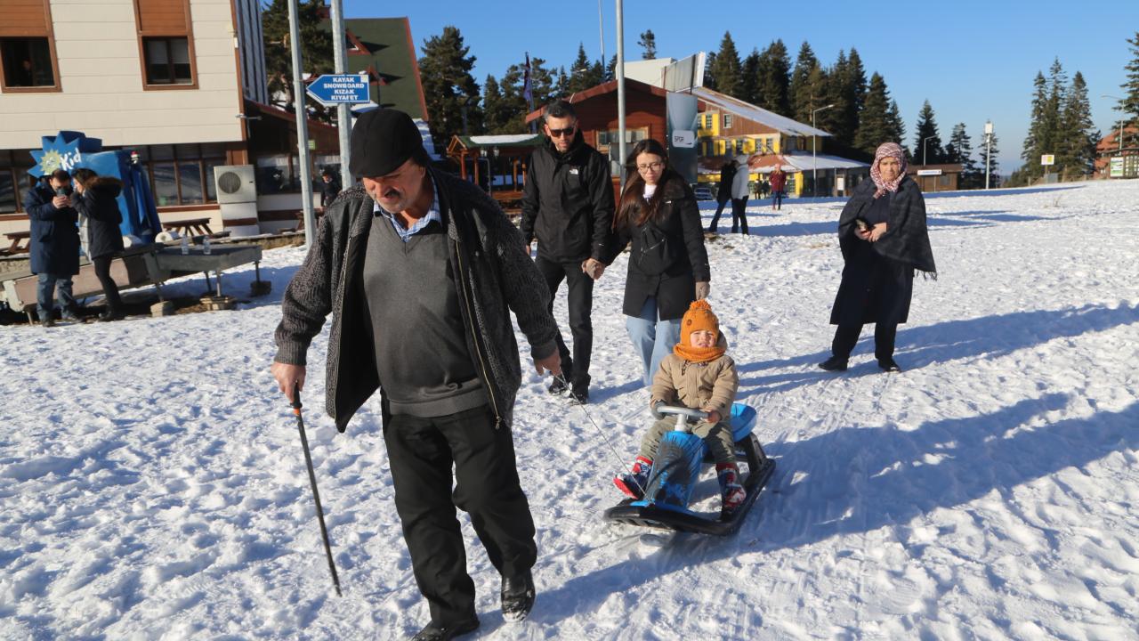 Yeni yıl öncesi Ilgaz Dağı`na gelenler yürüyüş yapıp kızakla kayarak zaman geçiriyor.