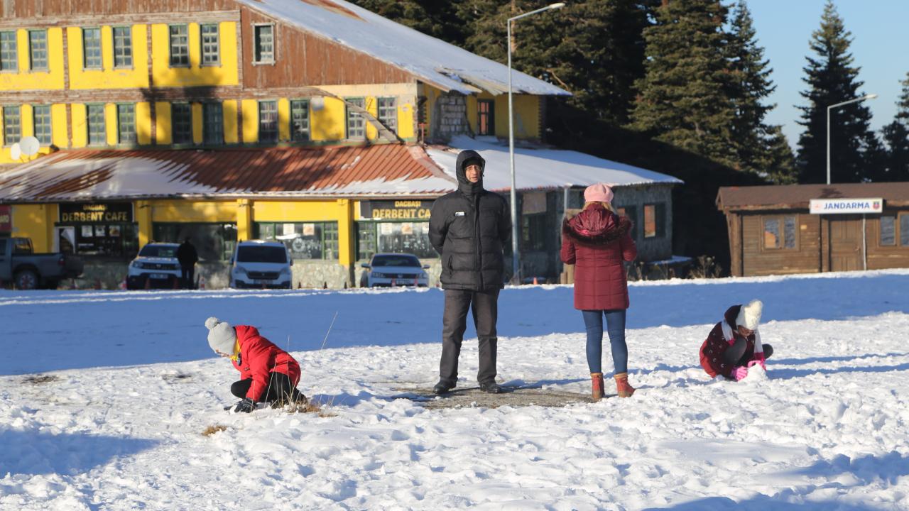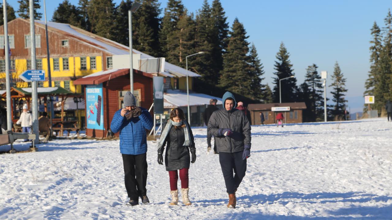 Kar kalınlığının yaklaşık 10 santimetre olduğu dağda ziyaretçiler kayabilmek için kar yağışının artmasını bekliyor.