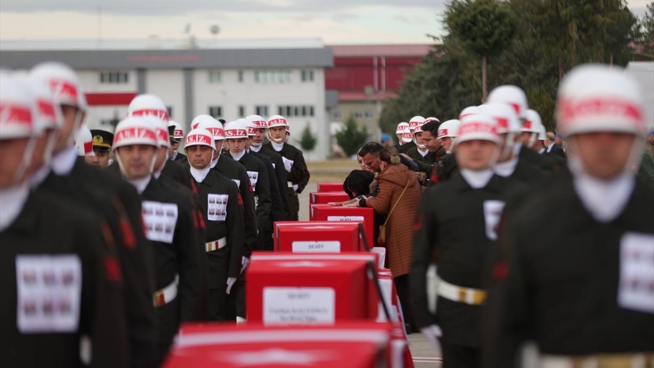 Burada düzenlenen askeri törende, şehitlerin öz geçmişleri okundu, dua edildi.