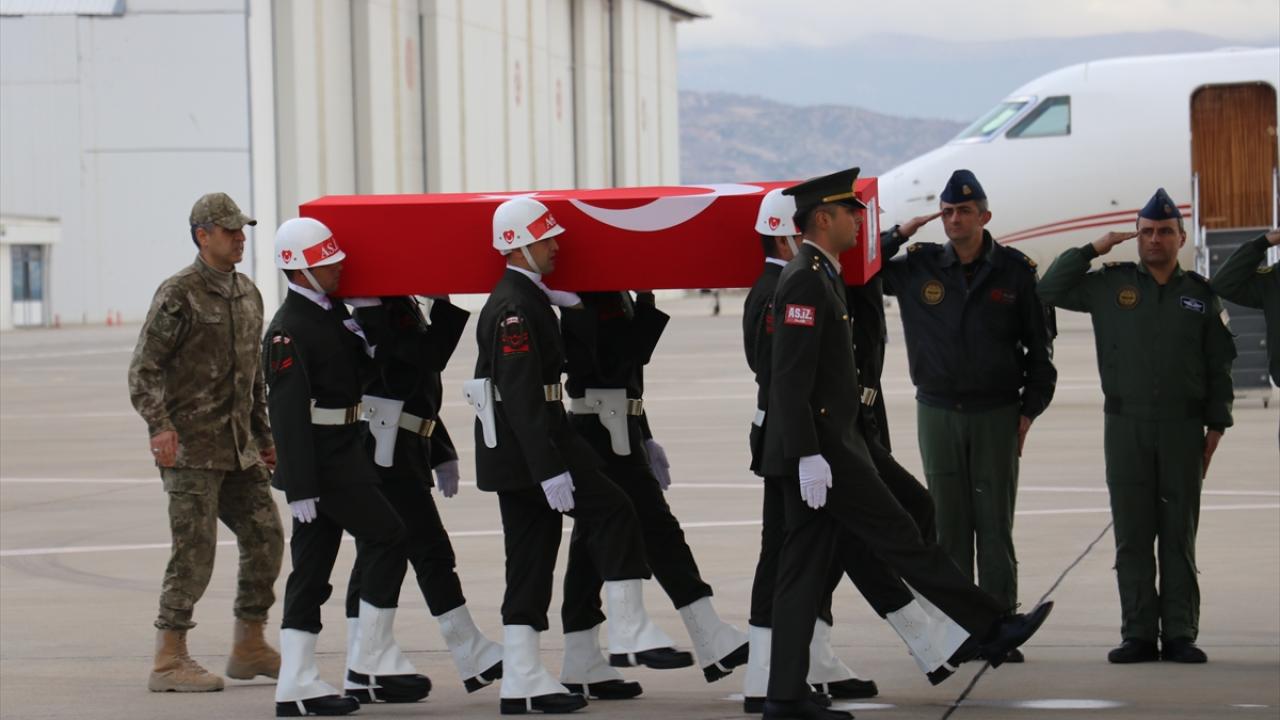 Şehitlerin Türk bayrağına sarılı cenazeleri, eskort eşliğinde Süleyman Demirel Havalimanı`na getirildi.