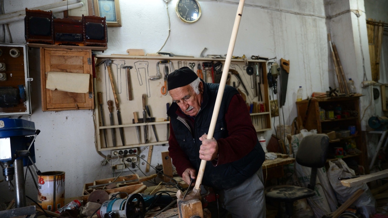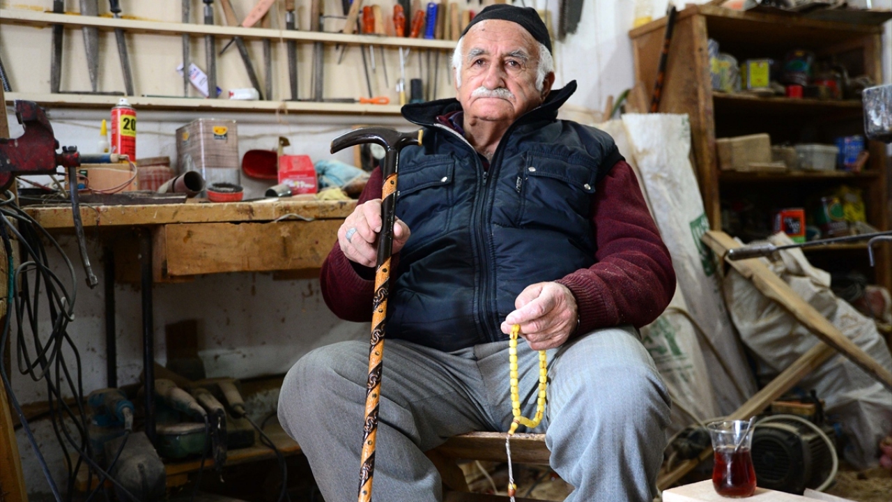 Diyabet hastalığına ve ilerleyen yaşına rağmen işini titizlikle yapan Karabulak, ürettiği bastonları yöre halkına satarak geçimini sağlıyor.