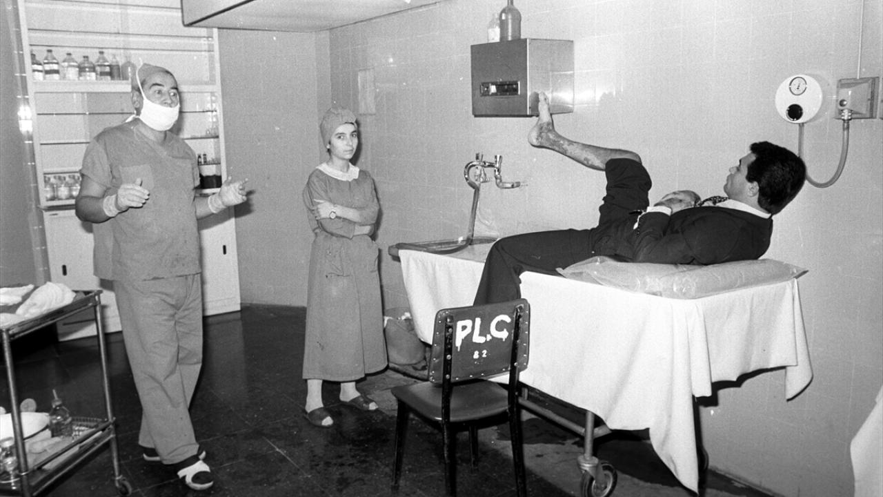 Gülhane Askeri Tıp Akademisinde (GATA), 25 Kasın1981`de basın mensuplarına verilen brifing sonrası yanık merkezi gezdirildi. (Arşiv)