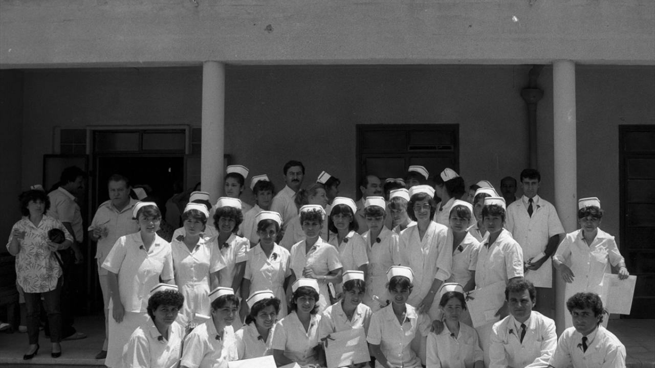 Hemşirelik ve hastabakıcılık okulundan mezun olan öğrenciler 22 Haziran 1987`de hatıra fotoğrafı çektirdi. (Arşiv)