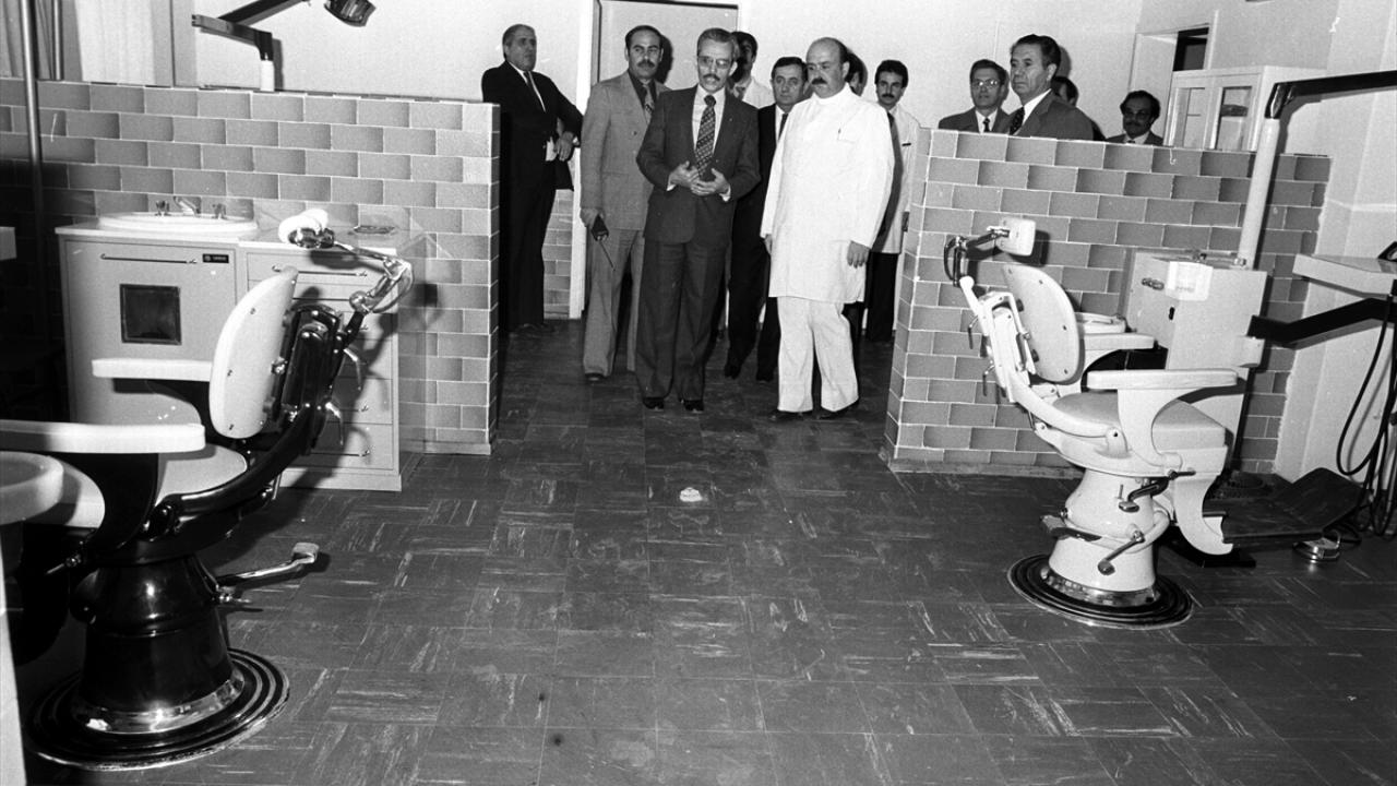 Sosyal Sigortalar Kurumunın (SSK) Topraklık semtindeki ilk iş tedavi ve protez merkezinin 09 Kasım 1981`deki açılış törenine katılan Sosyal Güvenlik Bakanı Sadık Side`ye (sağ2), Başhekim Dr. Yavuz Ertürk (beyaz önlüklü), servisler hakkında bilgi verdi. (Arşiv)