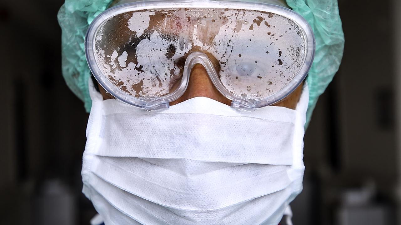 Yeni tip koronavirüs (Covid-19) tanısı konulan yüzlerce kişinin sağlığına kavuşturulduğu Necmettin Erbakan Üniversitesi Meram Tıp Fakültesi Hastanesinde, Covid-19 tanılı veya şüpheli hastalar için ayrılan ameliyathaneleri, 2 Mayıs 2020`de Anadolu Ajansı (AA) ekibi tarafından görüntülendi. Bir sağlık çalışanın, uzun süredir yüzünde takılı bulunan koruyucu gözlüğünün buğulandığı gözlendi. (Arşiv)
