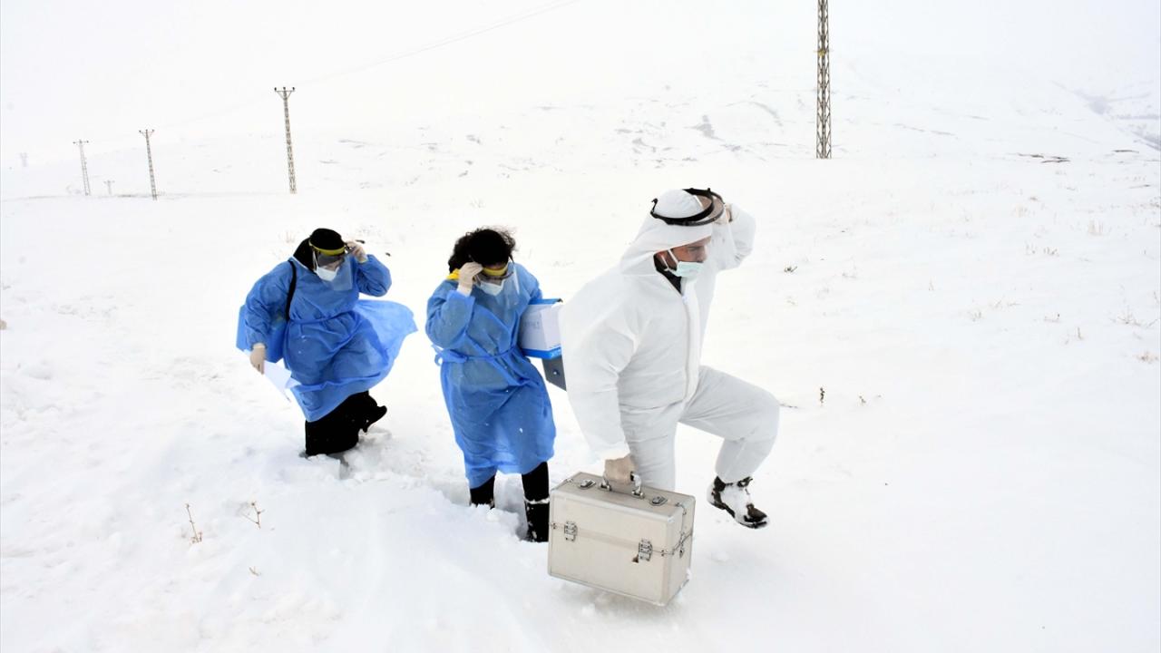 Muş`ta yeni tip koronavirüsle (Covid-19) mücadele kapsamında aşı çalışması yürüten sağlık ekipleri, olumsuz hava koşullarında dahi kırsaldaki 80 yaş ve üzerindeki kişilere ulaşarak CoronaVac aşısı yapıyor. İl Sağlık Müdürlüğü tarafından doktor, hemşire, anestezi teknikeri ve yardımcı personelden oluşturulan aşı ekibi, Serinova beldesine bağlı Aydıngün Mezrası`nda yaşayan 88 yaşındaki Saadet Tuncel`i aşılamak için harekete geçti. Yolda kar nedeniyle araçlarla ilerleyemeyen sağlık ekipleri; 30 Ocak 2021`de fırtına, tipi ve dondurucu soğuğa rağmen 2 kilometre yürüyerek mezraya ulaştı. (Arşiv)