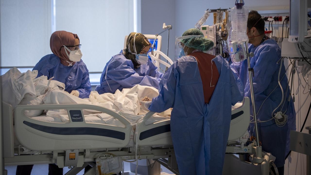 Ankara Şehir Hastanesi`nde Covid-19 hastalarının tedavi gördüğü yoğun bakım servisinde görev yapan doktor ve hemşireler, birçok meslektaşı gibi 19 Temmuz 2021`de Kurban Bayramı`nı sevdiklerinden uzakta, şifa vermek için çabaladıkları hastalarının yanı başında geçiriyor. (Arşiv)