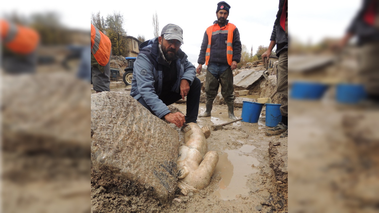 Çaydan çıkarılan heykel, arkeolojik incelemeye alındı.