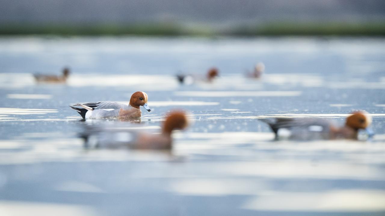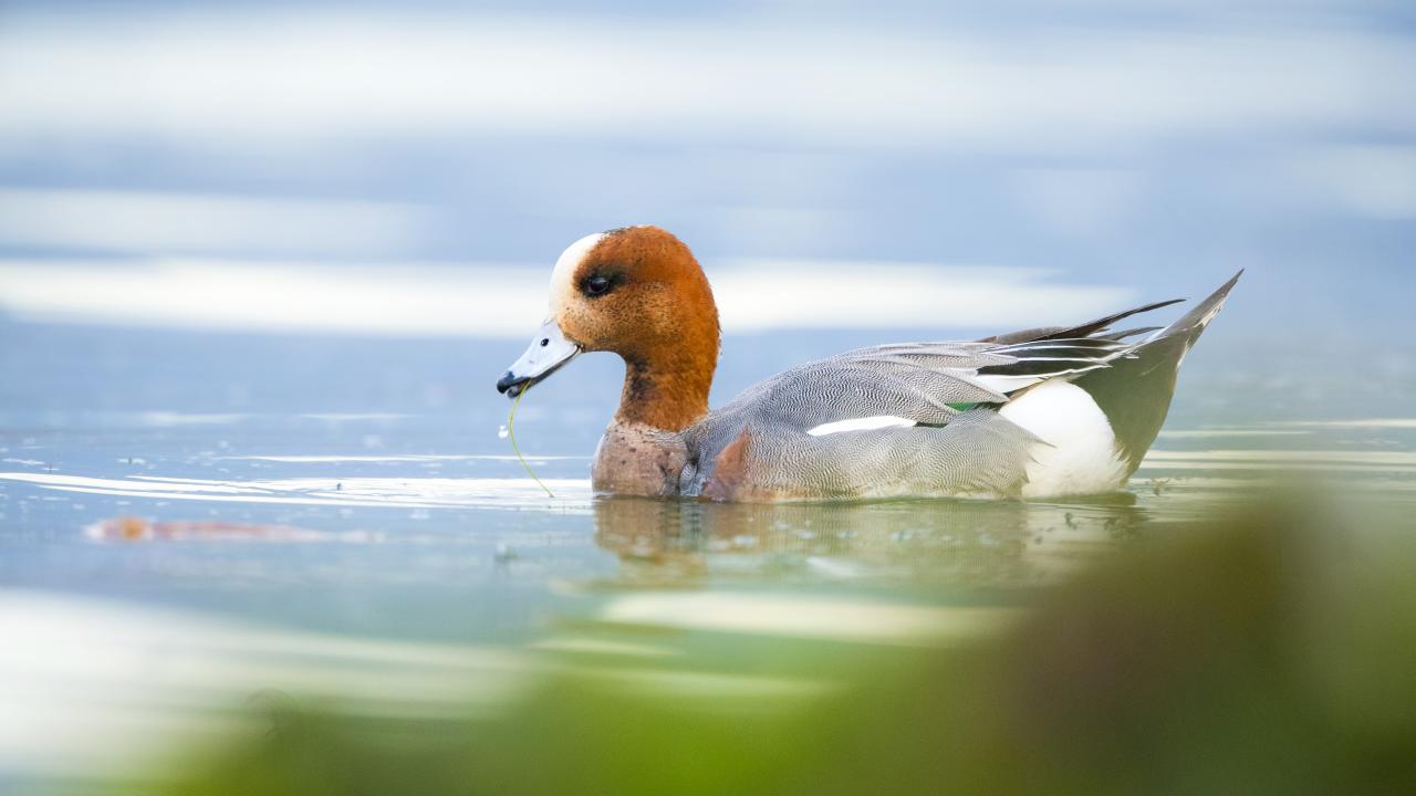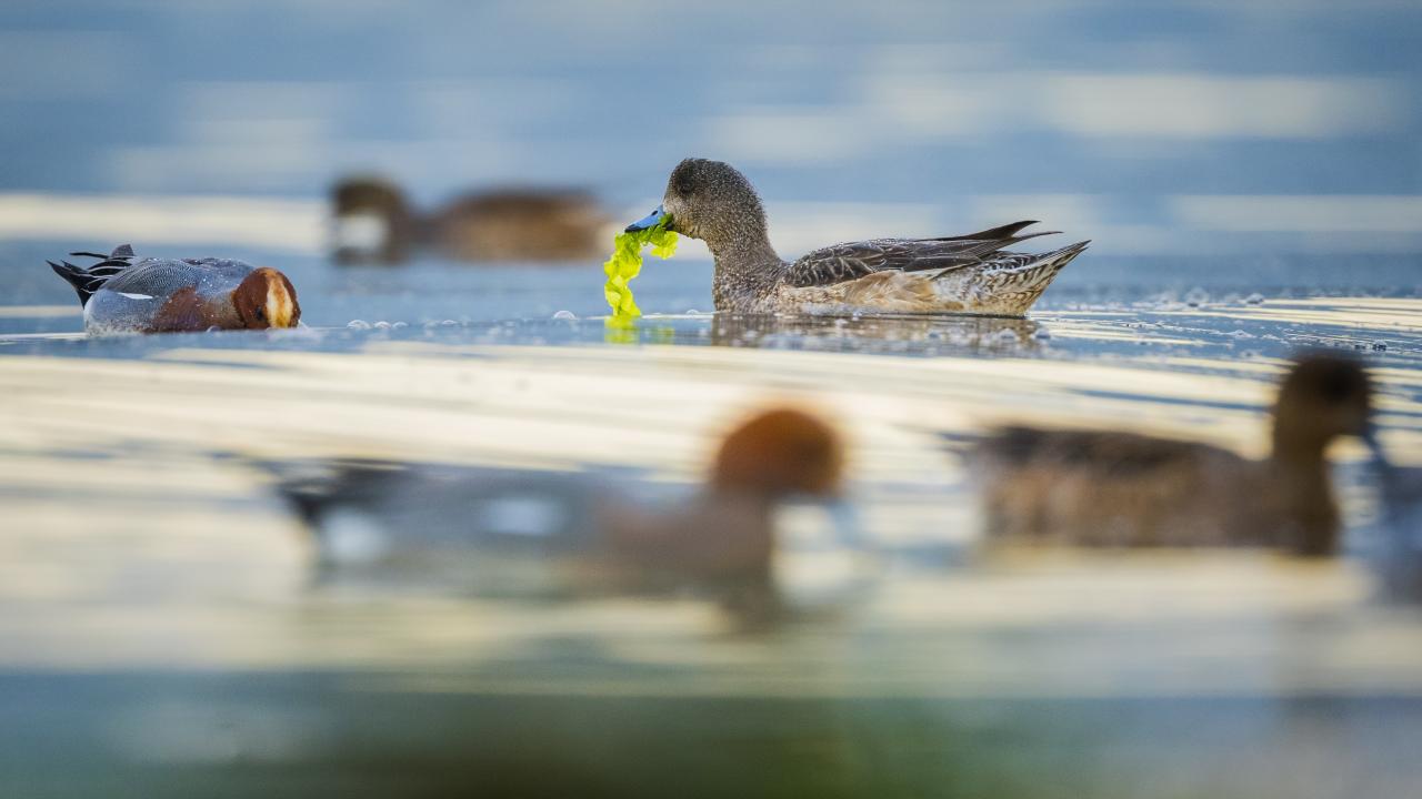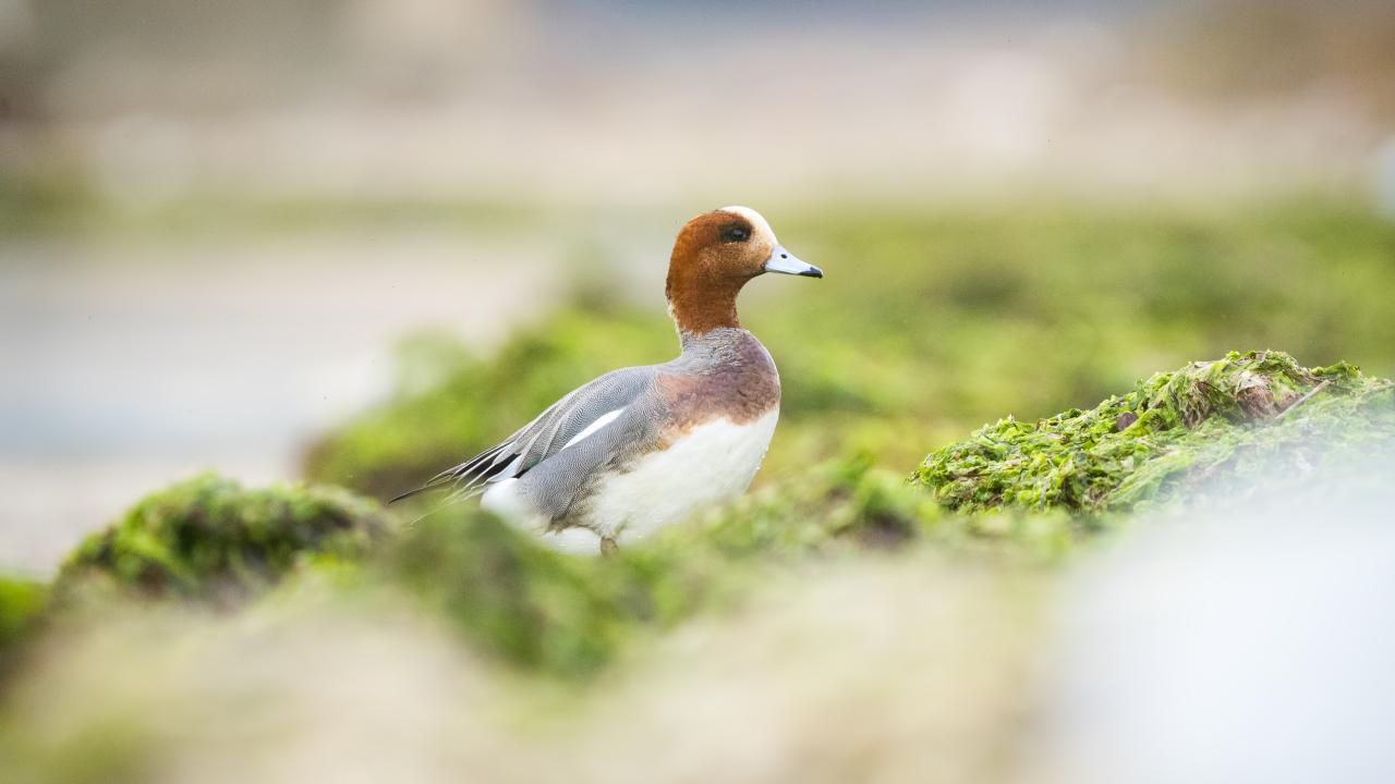Yalova Hersek Lagünü kıyısındaki Fiyu ördekleri, deniz yosunlarıyla beslenirken görüntülendi. Fiyu ördeği erkeklerinin, kızıl kahverengi kafası dikkat çekerken dişilerinin ise düz ve kırçıllı tüyleri göze çarpıyor.