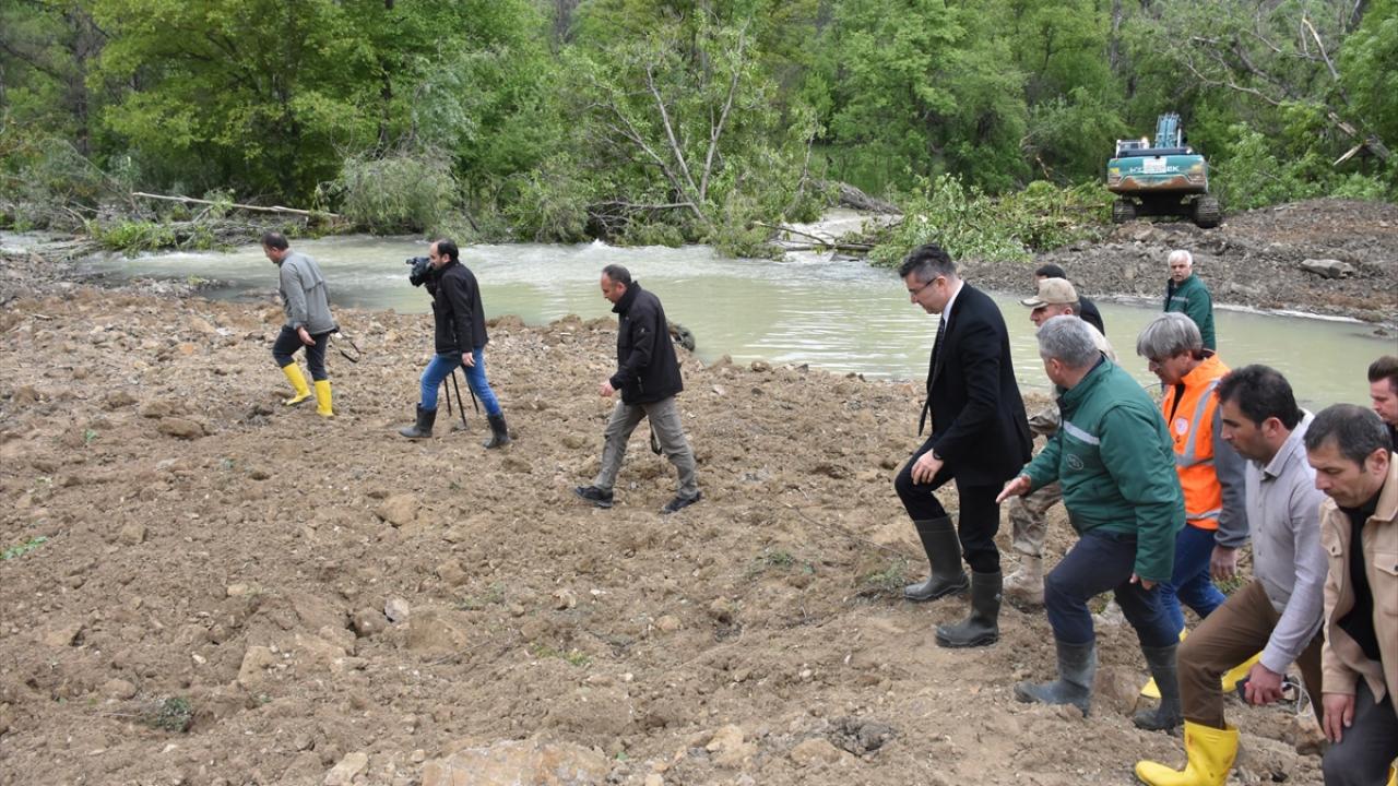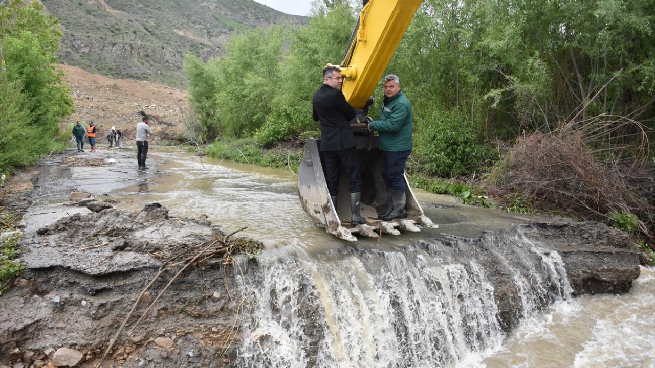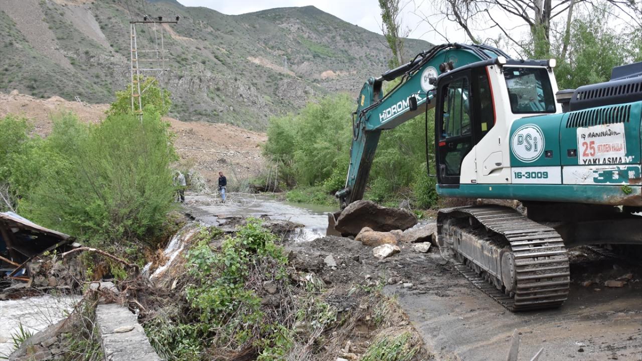 Bağbaşı Mahallesi`ndeki mezarlıklar ile Pehlivanlı Mahallesi`nde bulunan alabalık tesisinin de zarar gördüğü heyelandan sonra dere yatağında biriken sular, iş makineleriyle tahliye edildi.