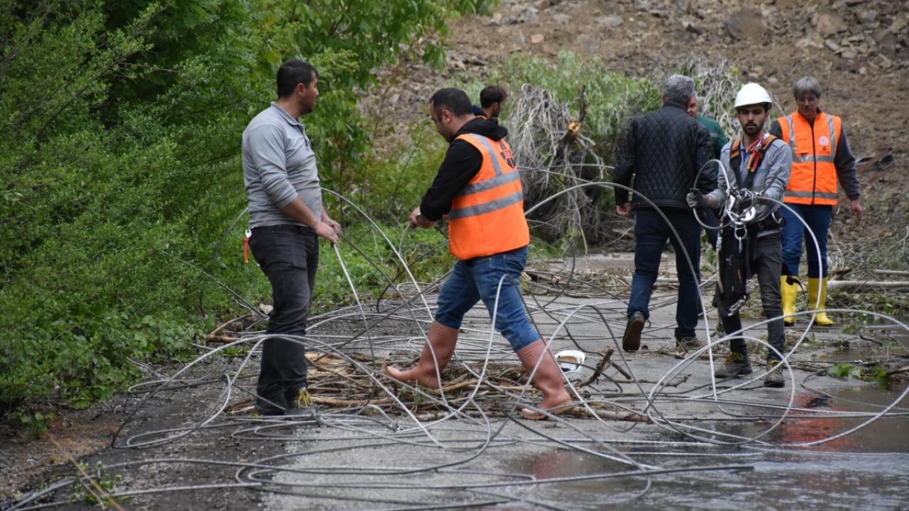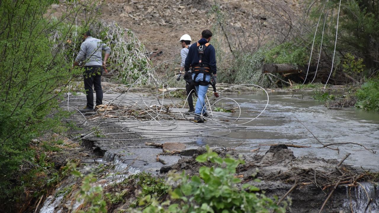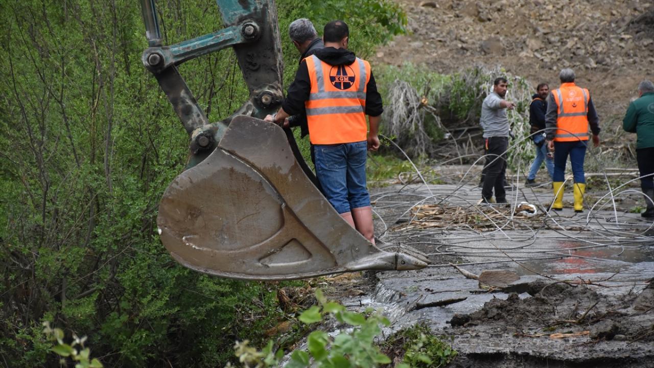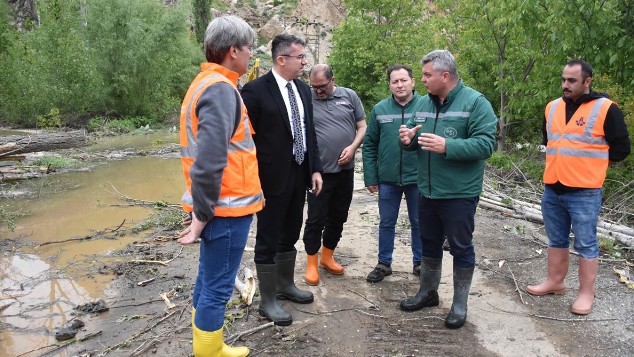 Bağbaşı Mahallesi`ndeki mezarlıklar ile Pehlivanlı Mahallesi`nde bulunan alabalık tesisinin de zarar gördüğü heyelandan sonra dere yatağında biriken sular, iş makineleriyle tahliye edildi.