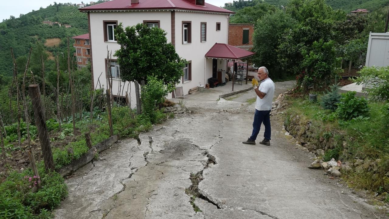 Trabzon’un Arsin ilçesi Çubuklu Mahallesi’nde heyelan nedeniyle beton yolda derin yarıklar oluştu, hasar gören 25 ev ve 1 cami boşaltıldı.