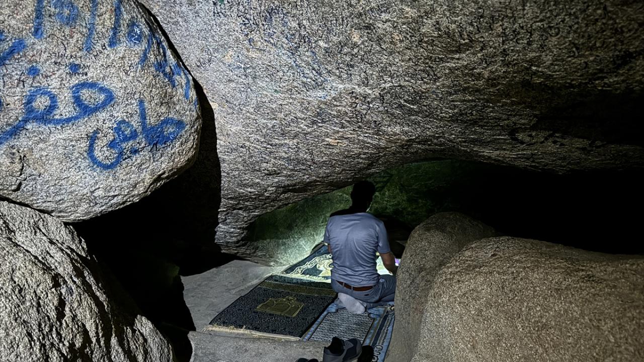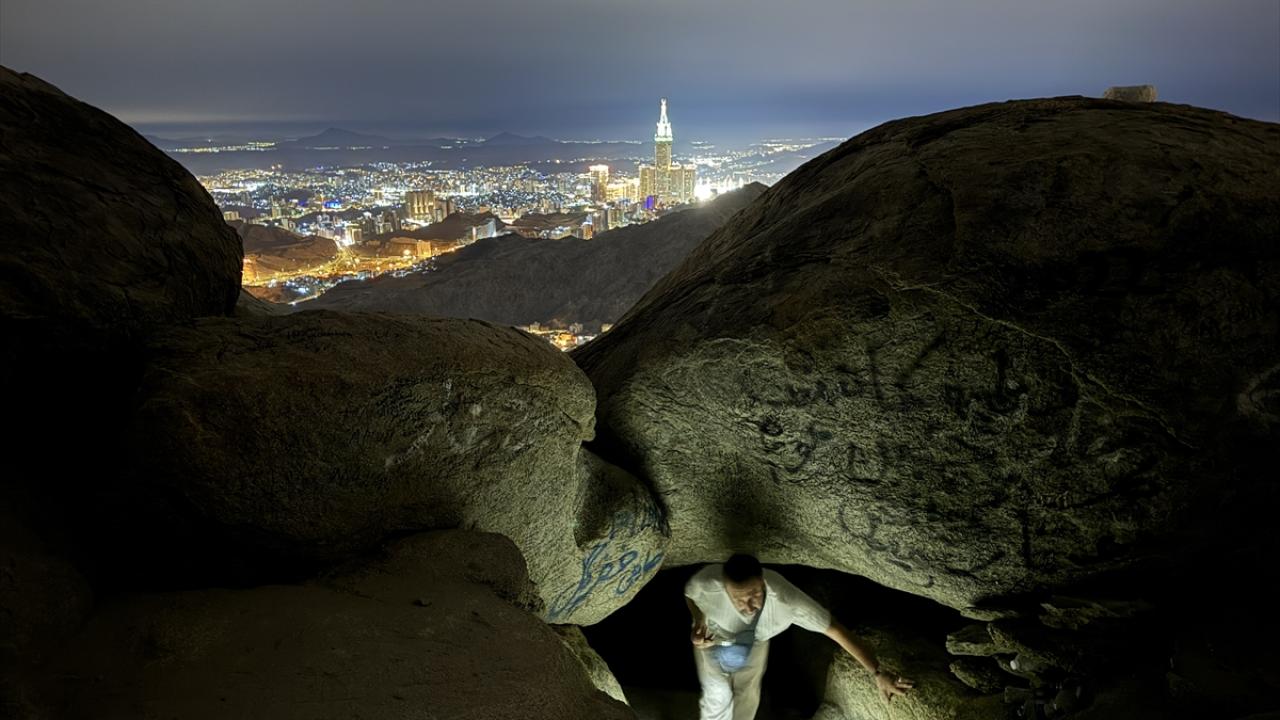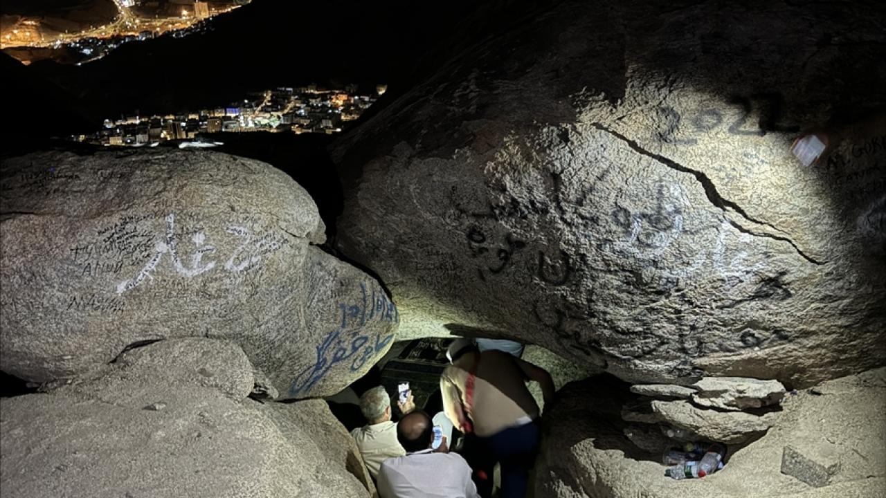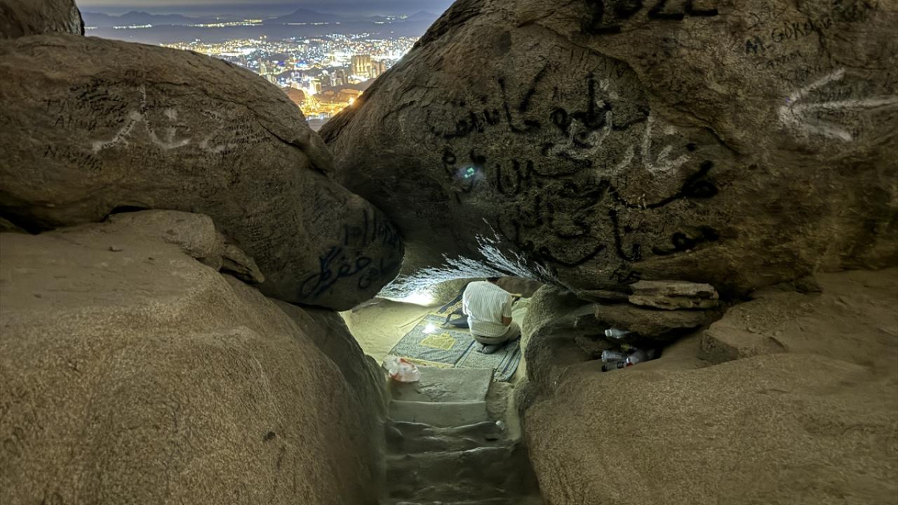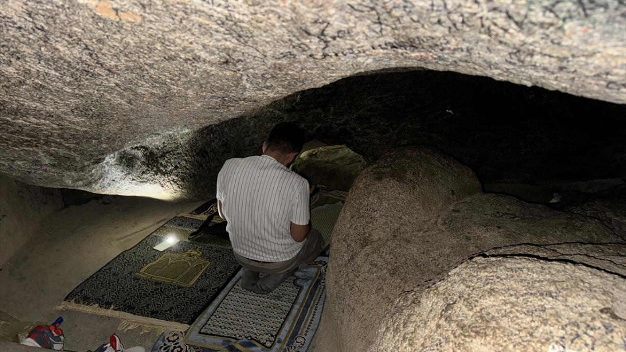 Sabahın ilk ışıklarında dahi 35 dereceyi bulan sıcaklığın etkilediği bölgede zirveye ulaşabilen hacı adayları, dağın zirvesinde yer alan ve Hazreti Muhammed ile Hazreti Ebubekir`in içinde bulunduğu sırada örümcek ağlarıyla kaplanan Sevr Mağarası`nda, hicret döneminin atmosferini yaşıyor.