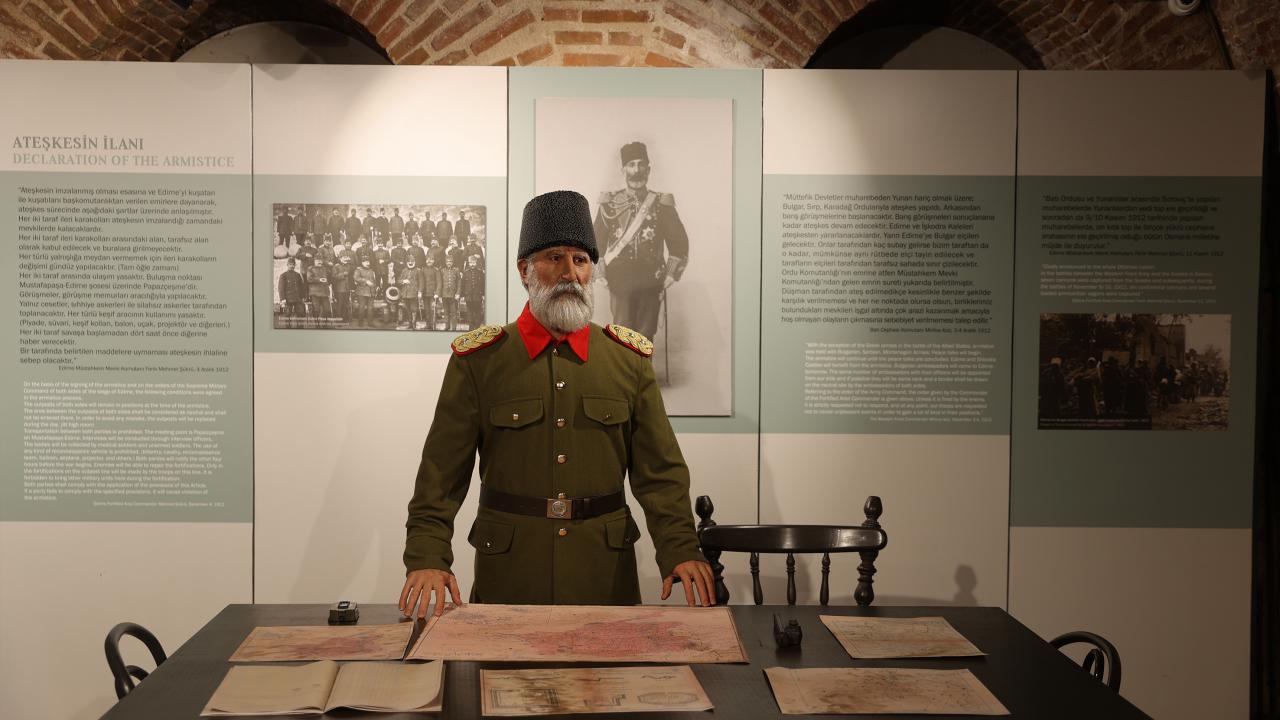 Müzede Edirne müdafii Mehmet Şükrü Paşa`nın karargah olarak kullandığı tabyada, Şükrü Paşa`nın yanı sıra, savaşta Kızılay`ın müdahale anı silikon heykellerle canlandırılıyor.